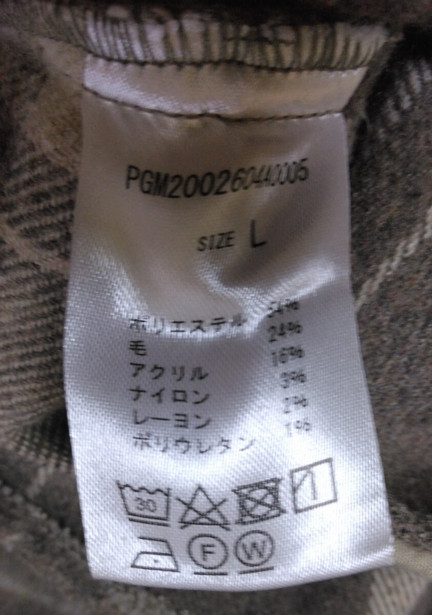 素材:ポリエステル54%毛24%アクリル16%レーヨン2%ポリウレタン1%