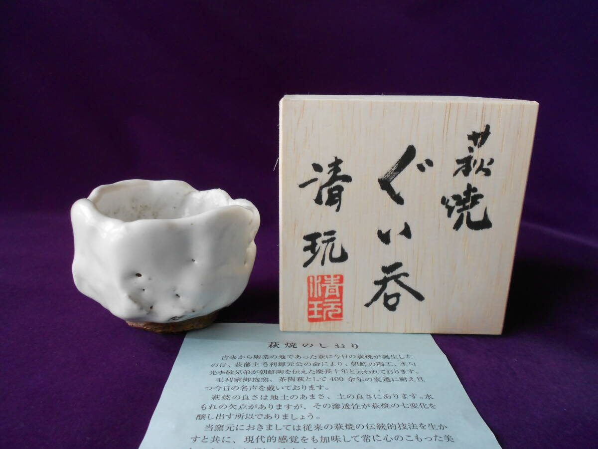 酒盃! 山根清玩 ☆鬼萩手びねりぐい呑①☆ 新品 木箱入り サカズキ 杯 盃 おちょこ 萩焼 ギフト