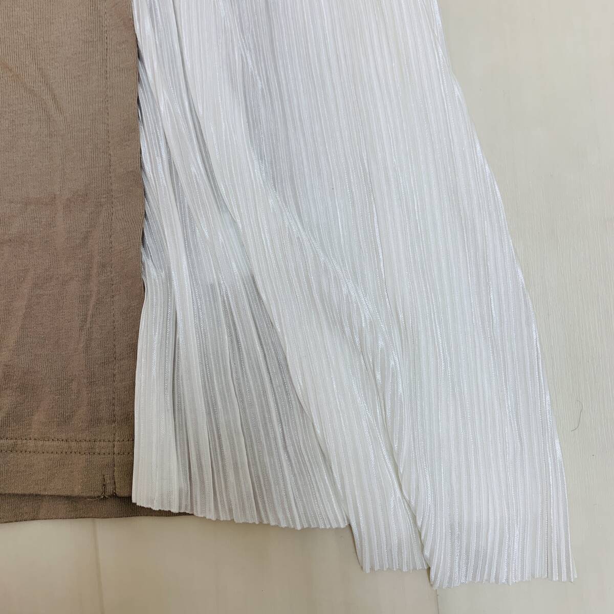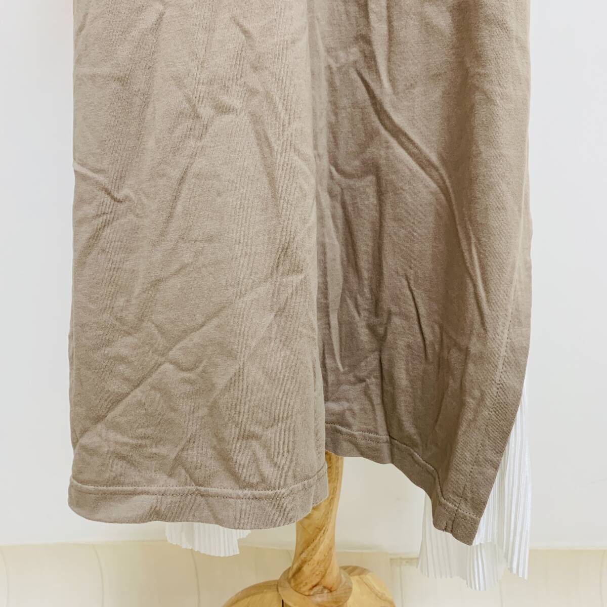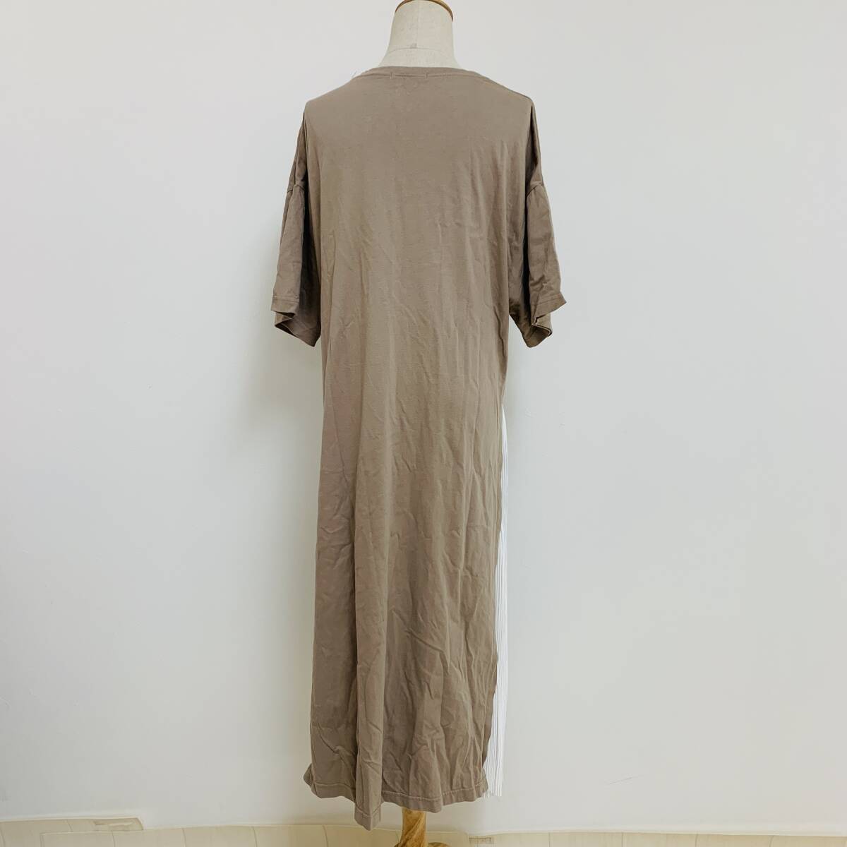 YH2538 RUDE GARRET レディース 半袖 ワンピース ロング丈 プリーツ 丸首 モカ 茶 Mサイズ 重ね着風 カジュアルスタイル 万能 USED 古着