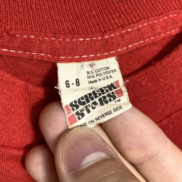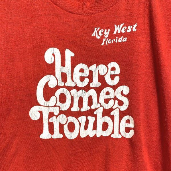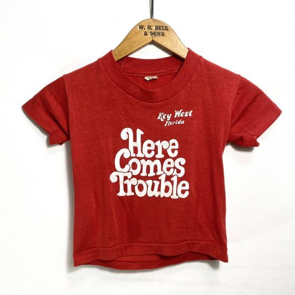■ トラブル?! 子供用 80s 80年代 ビンテージ USA製 SCREEN STARS ” Key West Florida ” プリント 半袖 Tシャツ 6/8 レッド アメカジ■