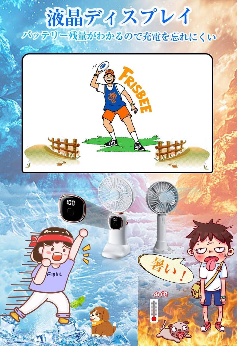 【圧倒的風速】ハンディ扇風機は7ブレードと新型モーターを採用して、同じタイプの5枚羽の扇風機より、回転速度が速くなり,風が強力でまっすぐ強い風を吹かせます。顔の近くで風を起こすことで、体感温度を下げられ、もっと涼しい、猛暑日にも快適です。