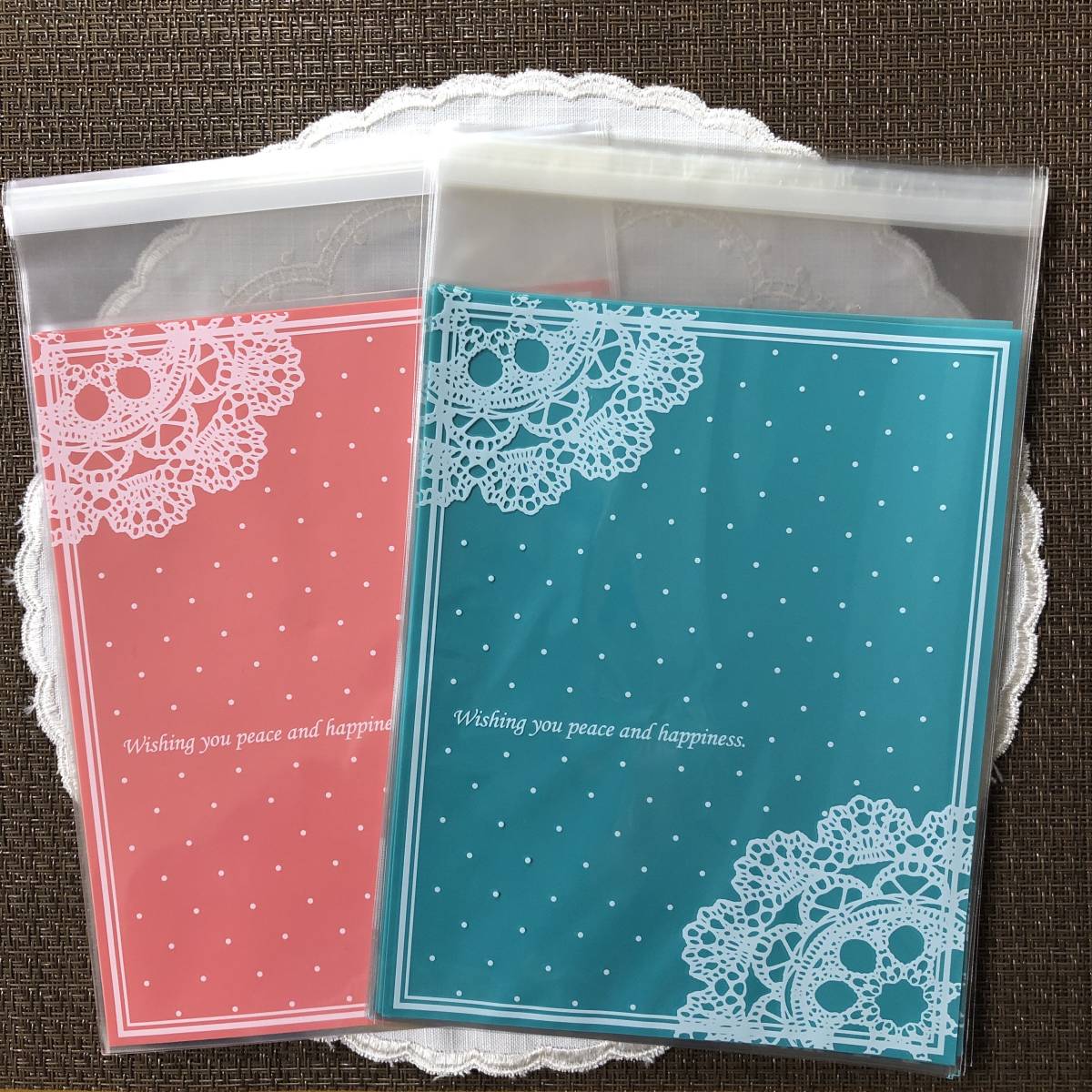 レース柄 ピンク・ブルー 16×20cm OPP袋 100枚 ラッピング袋