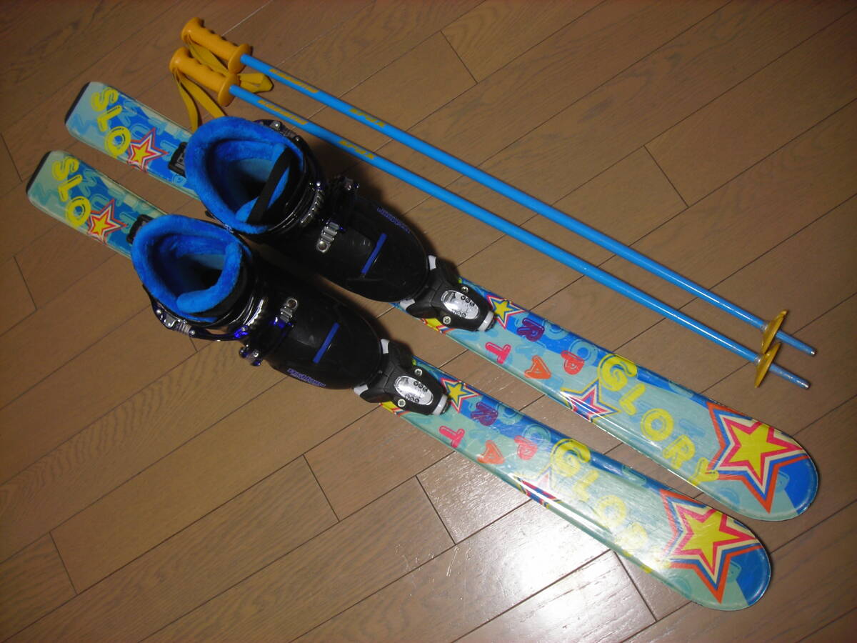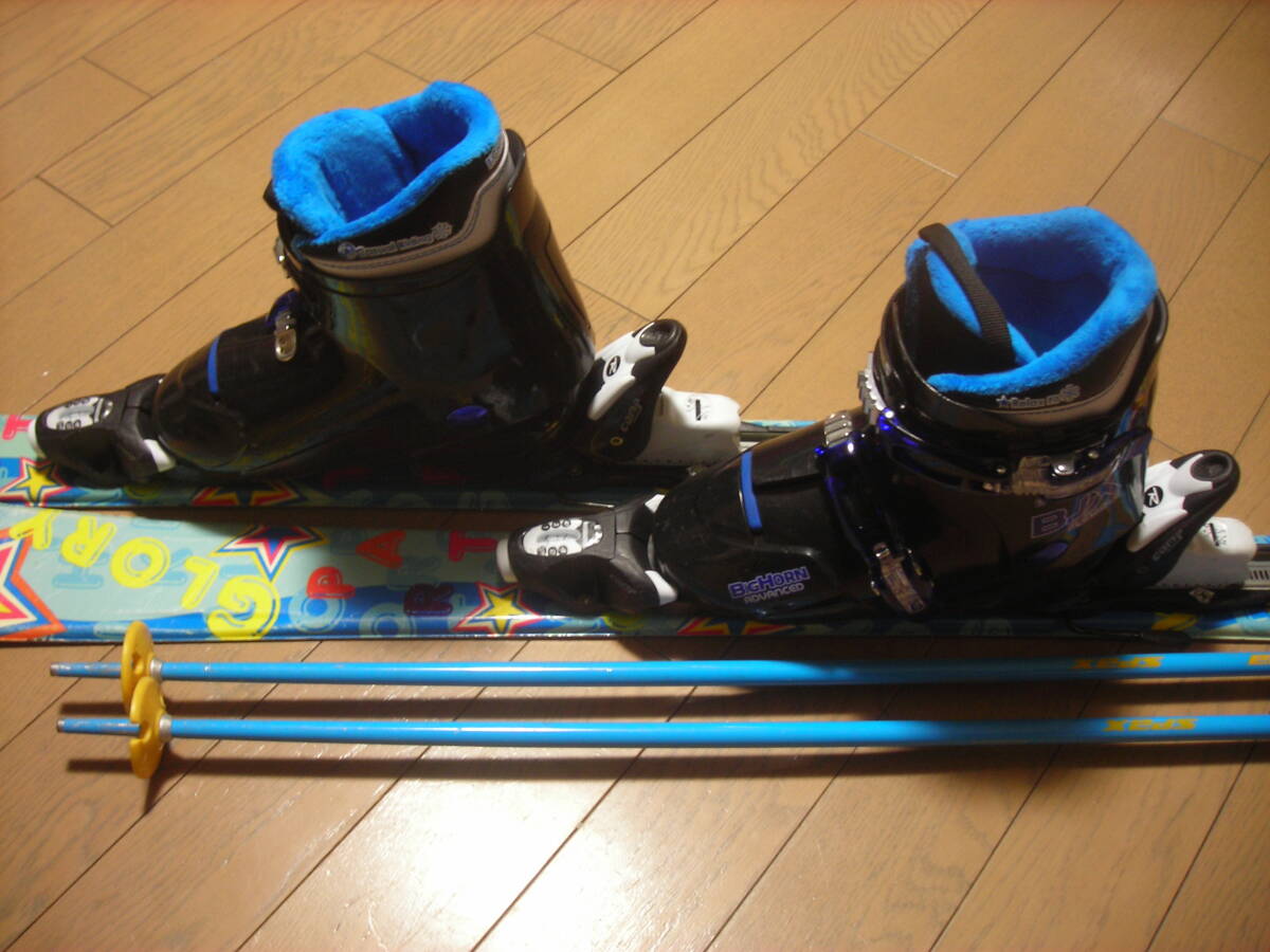 ●子ども スキー/板・ブーツ・ビンディング・ストックのセットです。