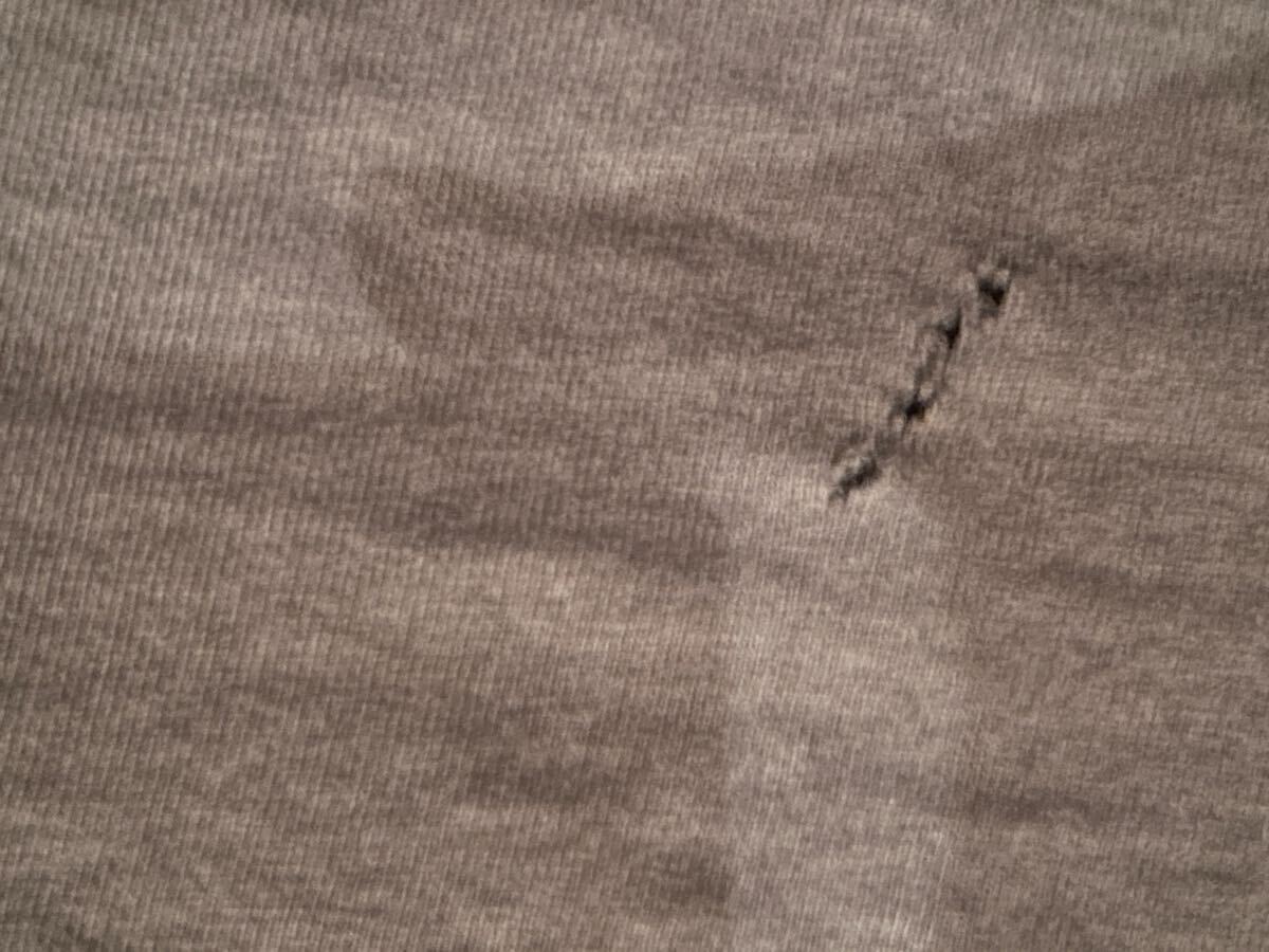 フロント下腹部に数箇所ホール、首元リブに僅かパンクございます。
