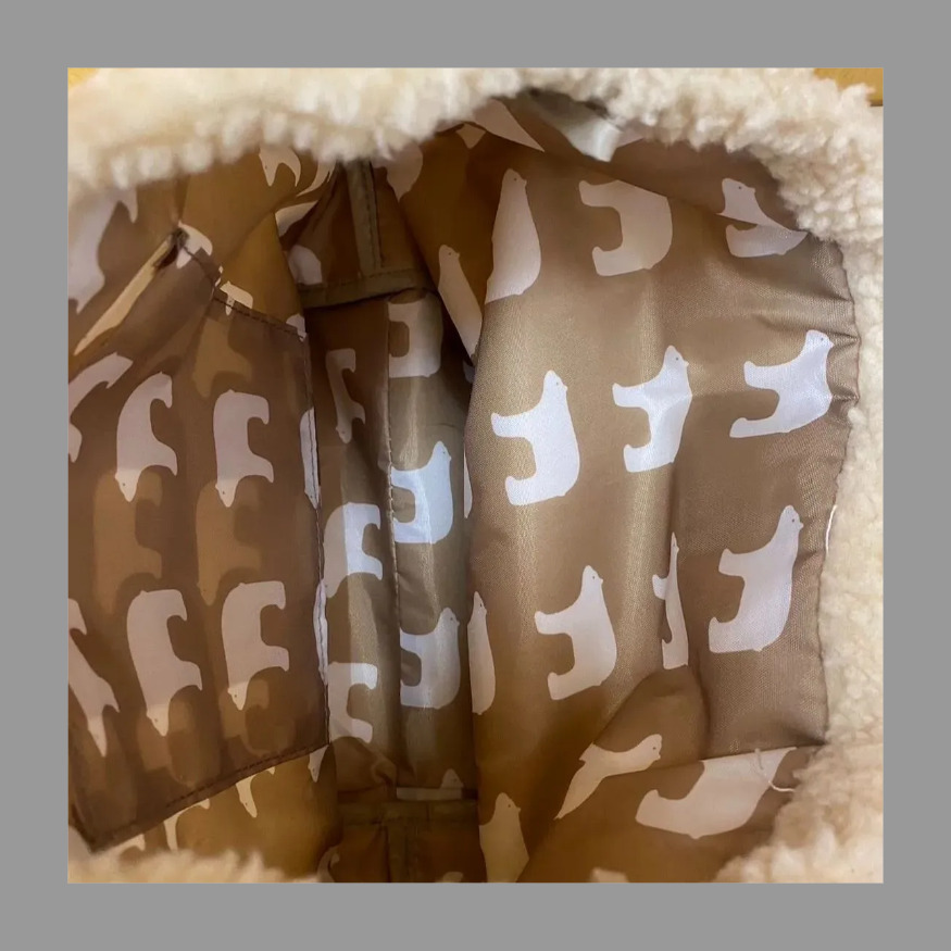 ◎【カバン ハンドバッグ】リンネル kippis キッピス 鞄 バッグ ハンドバッグ ボア生地 白くま カジュアル 普段使い かわいい ふわふわ もこもこ 冬 レディース 女性用 男女 兼用 裏地に白くま たくさん 大口 便利 おでかけ