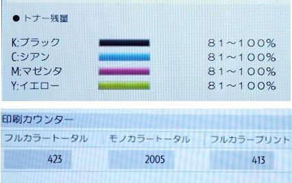 2,428枚 ※落札後発送前に動作確認を再度行いますので、カウンター・トナー残量の数値が多少変動します。ご了承下さい。 |