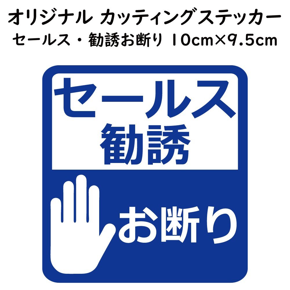 ステッカー 【 セールス勧誘お断り ハンドサイン ブルー 縦10cm×横9.5cm 】 シール 玄関 表札 文字 カッティングステッカー