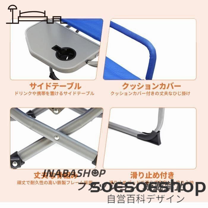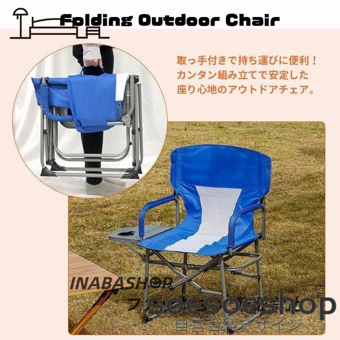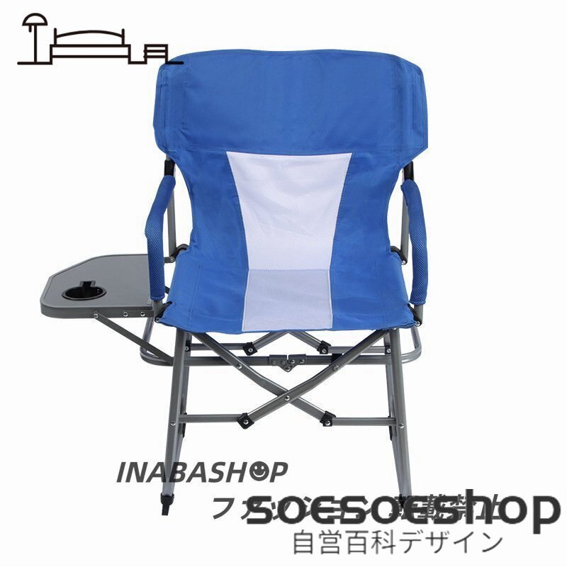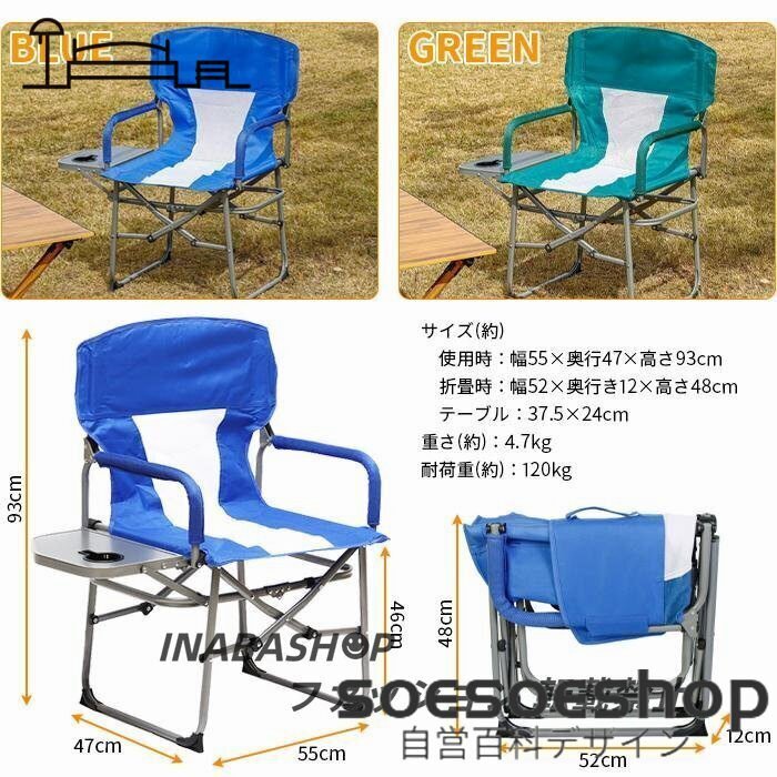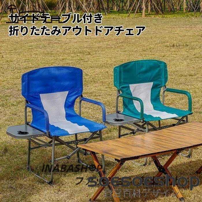 サイドテーブル付き 折りたたみ アウトドア チェア キャンプ 椅子 耐荷重 120kg テーブル付き 軽量 折りたたみチェア ブルー