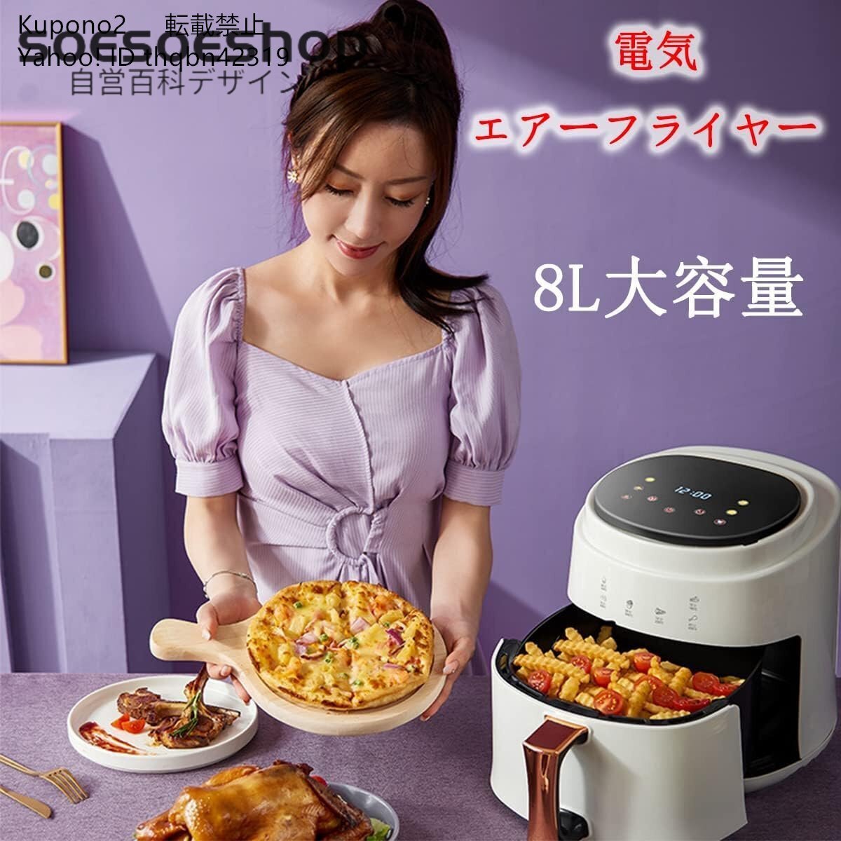 ノンフライヤー8L大容量Air fryer 電気フライヤー ノンオイル 揚げ物 惣菜 4~5人 エアーフライヤー LEDディスプレイ タッチパネル タイマー