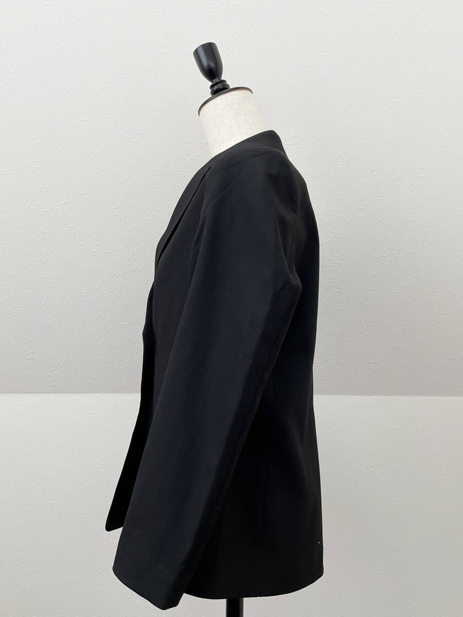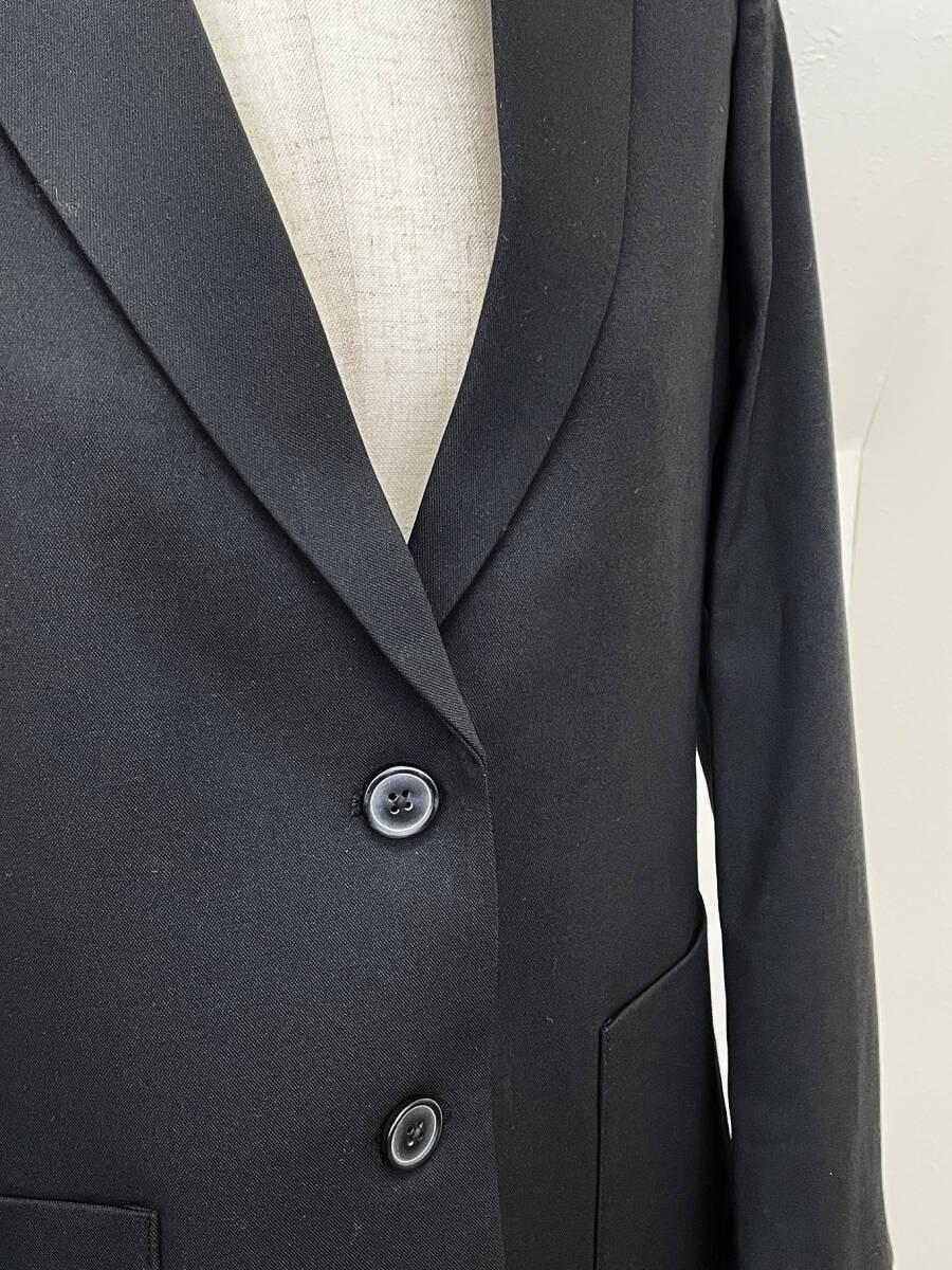 表示サイズ 11(146cm表記ですが、やや大きめのため155cm前後の方向け) 着丈 61cm 肩幅 34cm 袖丈 54.5cm アームホール 44cm 袖口 26cm バスト 90cm **トルソーサイズ 5号相当(B:78 W:56 H:82 肩幅:36㎝)** 色 ブラック(019) 素材 画像参照 その他 裏地あり(総裏)、肩パッドあり、手洗い可 英国ブランドNEXTのガールズサイズのテーラードジャケット、色は黒です。 サイズは11(146cm相当)と表記されていますが、全体的にゆったりめの作りとなっており、155cm前後でSサイズもしくは普段7号程度を着ている女性や、ジュニアガールズにちょうどいいサイズだと思います(148cm5号の当方には大きいです)。 裏地と肩パッド付のフォーマル仕様で、アームホールや袖口にもゆとりがあり、成長期の制服代わりとしても長く対応できそうです。 2025年1月購入、タグ付き未使用のまま出品します。 中厚手のしっかりした裏地付きジャケットで付属ハンガーもありますので、おてがる配送ヤマト便での発送となります。 |