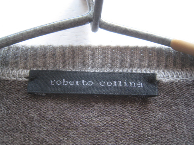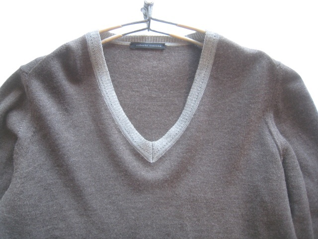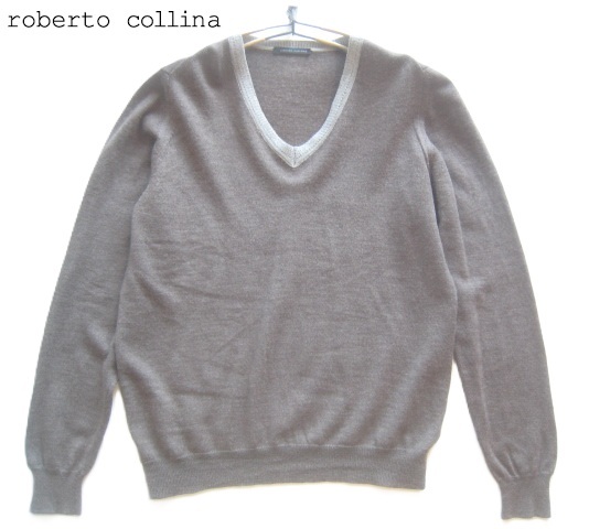 極上イタリア製!!ロベルトコリーナ roberto collina*定価3.5万 Vネック エクストラファインメリノウールニットセーター 46 実寸M 茶