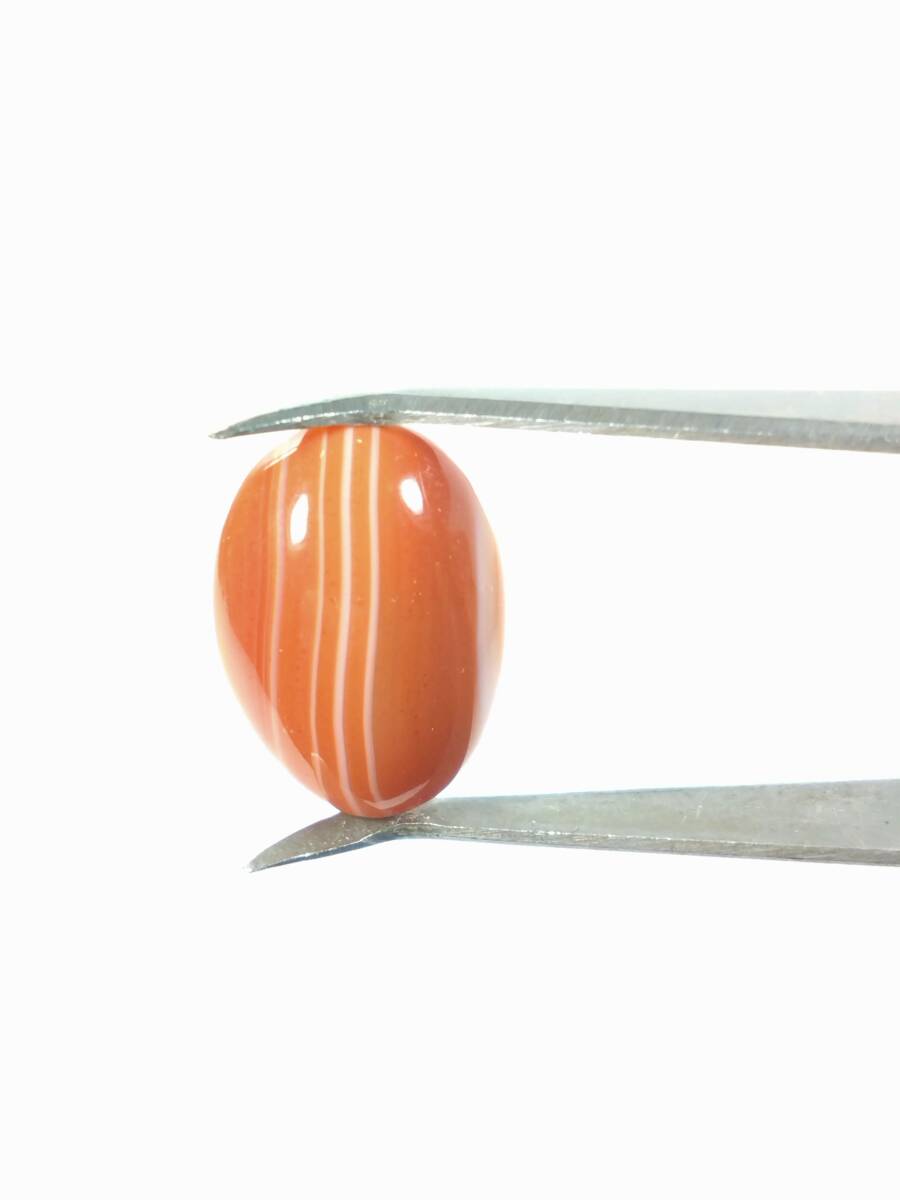 サードオニキスとは瑪瑙の赤色担当で名称カーネリアンと言われている部分(酸化鉄が混じり赤色を形成)と他の色(殆どが白色)とが交互に縞目を形成した鉱石の事を指します なかなか最近では見掛けなくなりましたルースの一つです コレクションとして手元に置くのも良いですし 手作りアクセサリーを製作されてもかなり綺麗に仕上がると思います