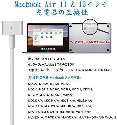 Macbook Air 用 充電器 45W Mag 2 T 型 Macbook Air 用 互換 電源アダプタ Macbook A1435 / A1436 / A1465 / A1466 T字コネクタ MacBook Airの11インチおよび13インチ 充電器