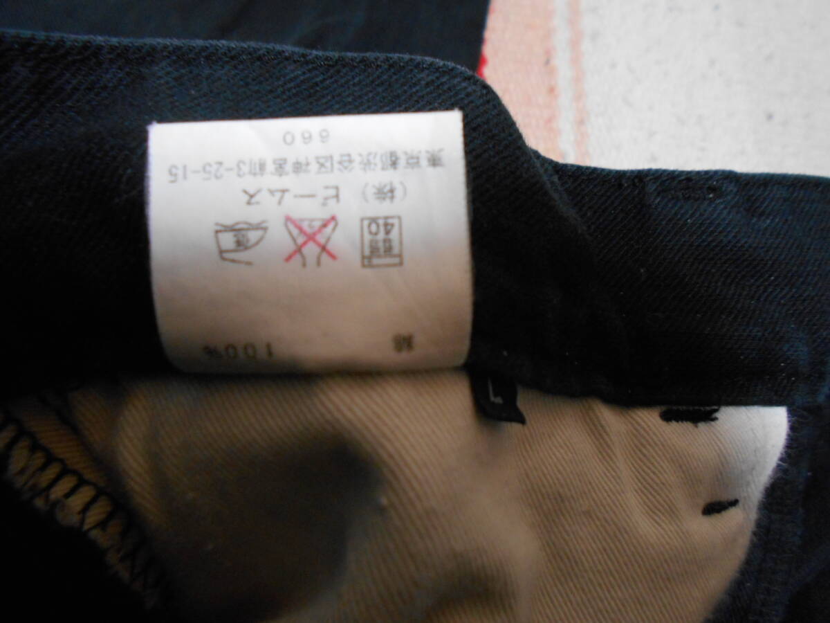 サイズ表示は L で、実感は W31-32インチ相当  実測は ウェスト81㎝、股下78㎝、股上26cm、裾幅19cm