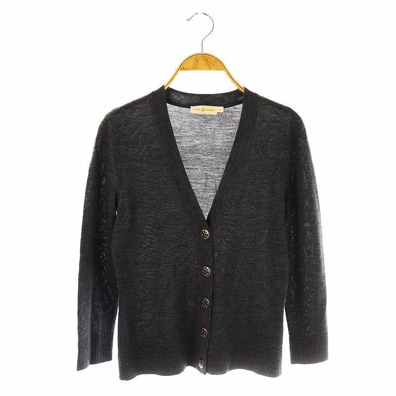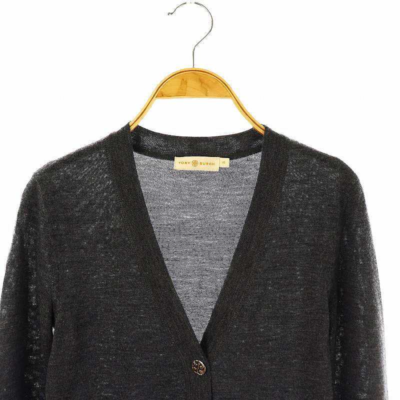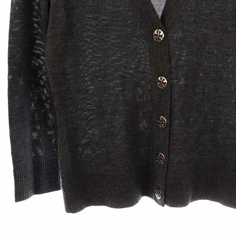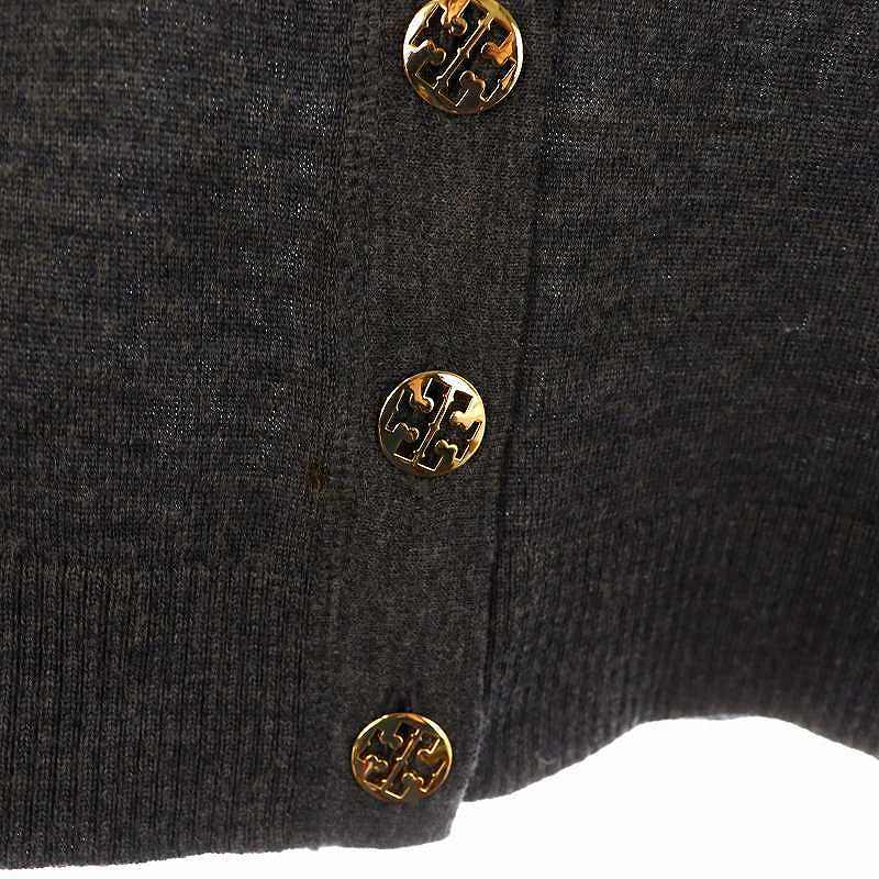 トリーバーチ TORY BURCH ロゴボタン ウール ニット カーディガン Vネック XS グレー /DF ■OS レディース