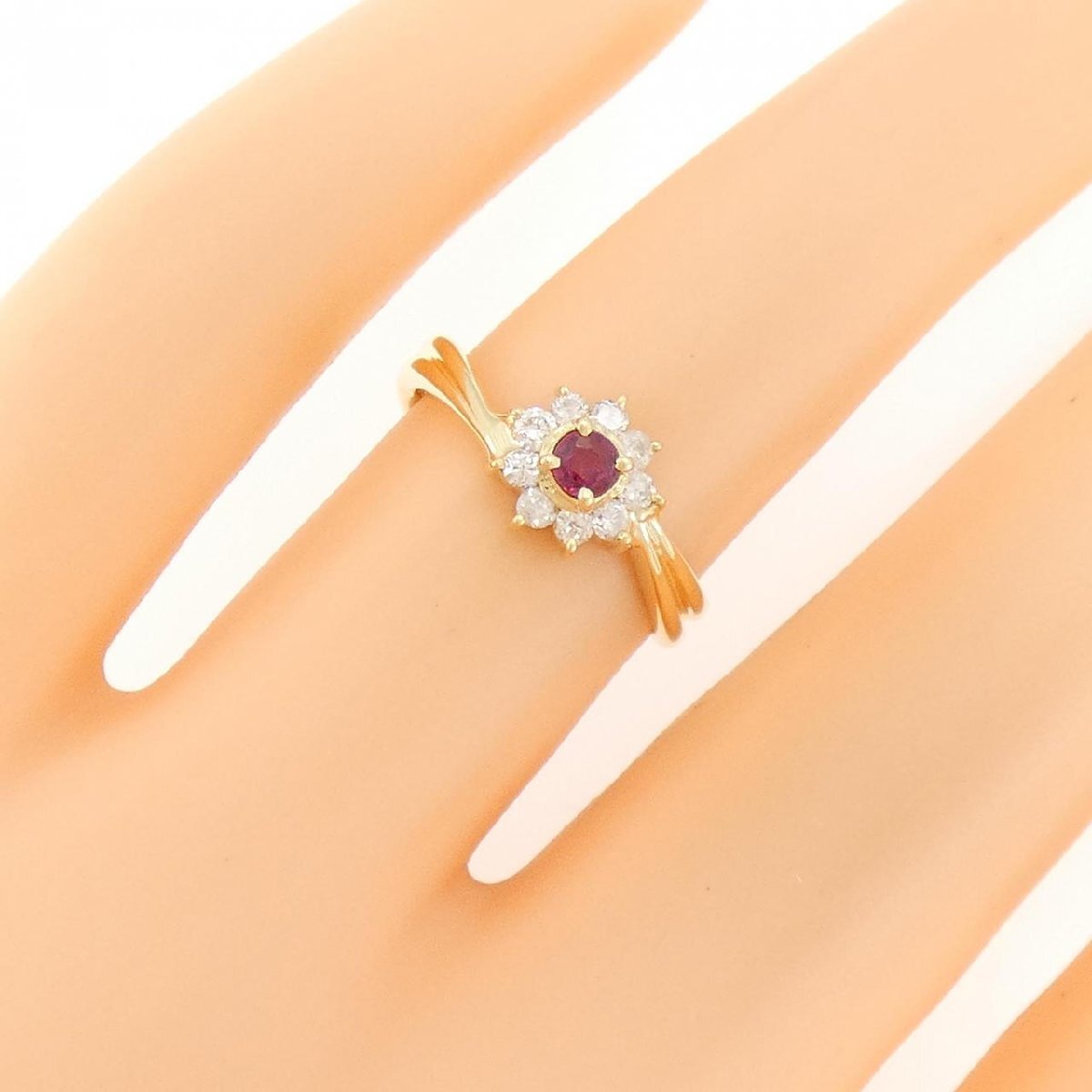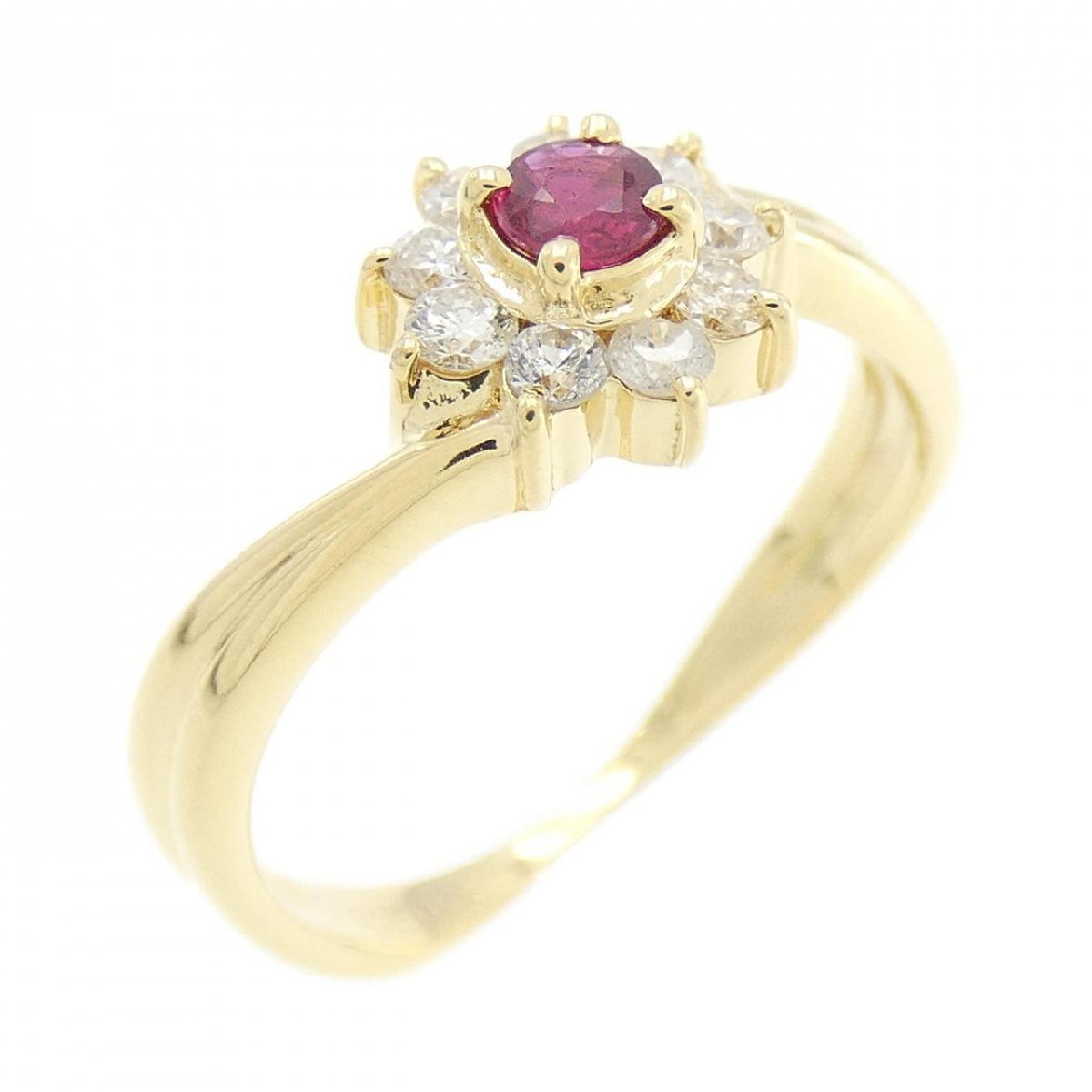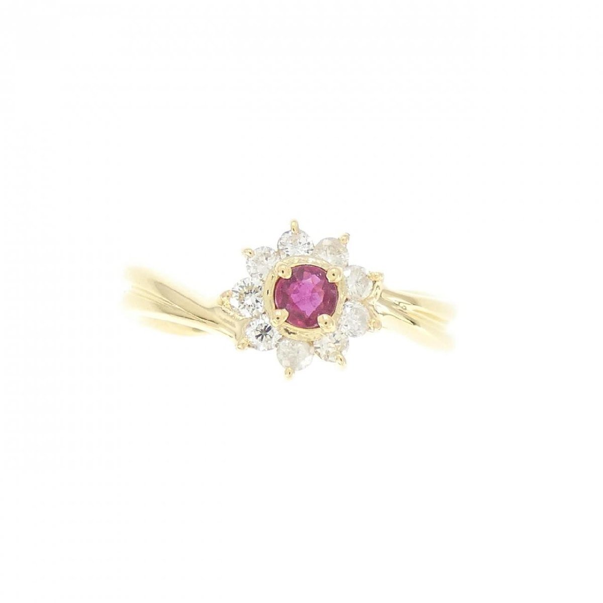 商品名 | K18YG フラワー ルビー リング |