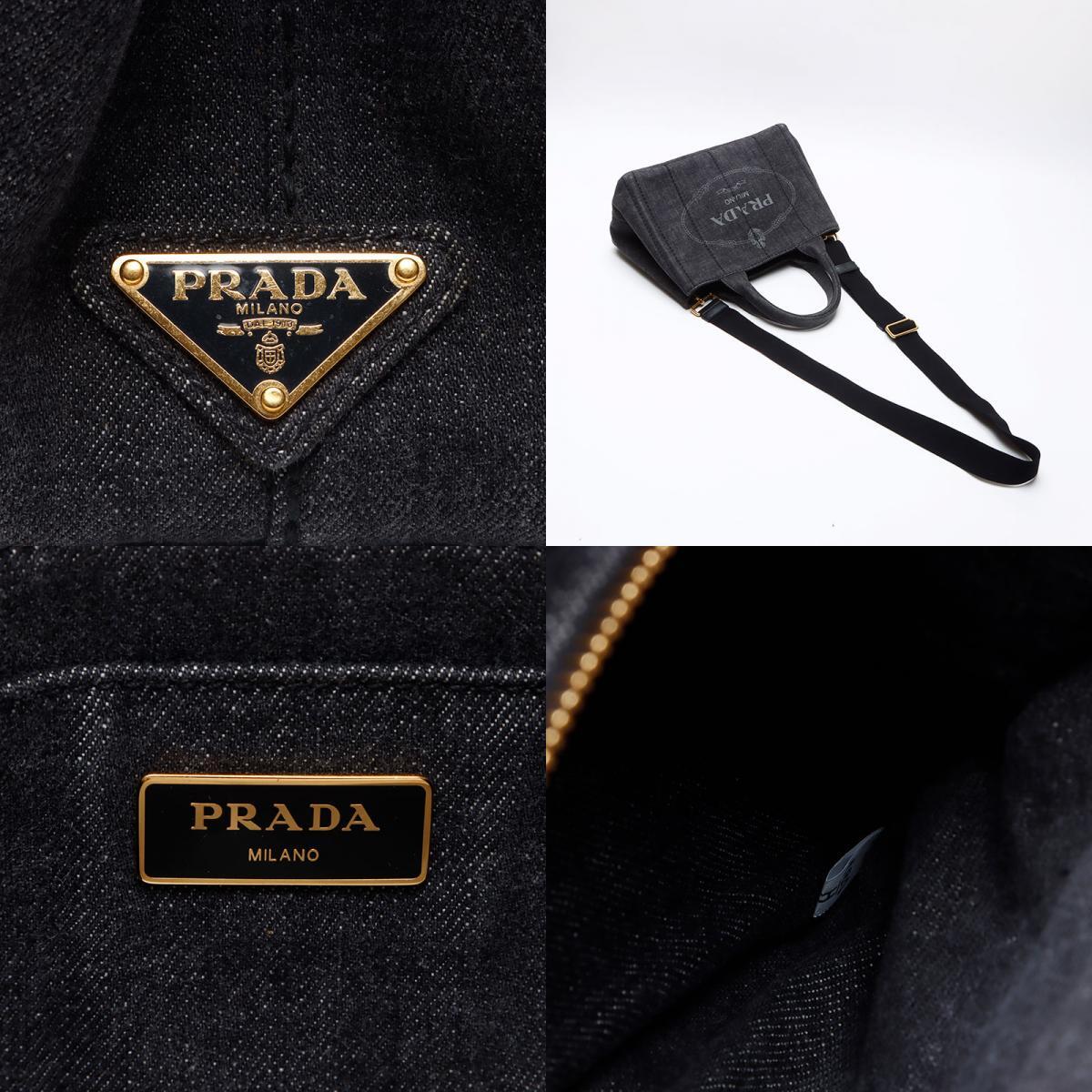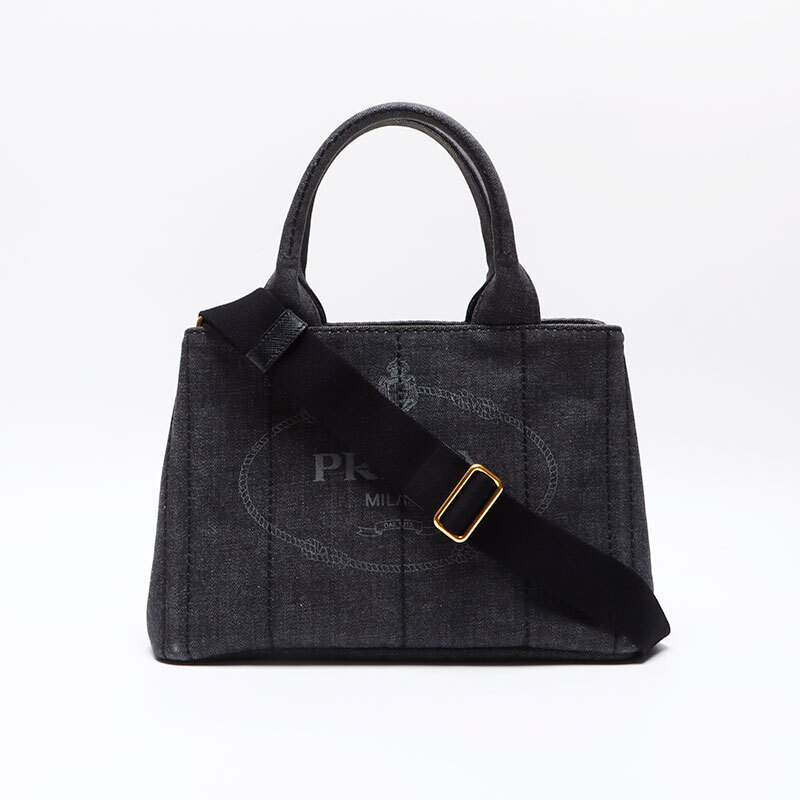 プラダ PRADA ハンドバッグ カナパ デニム スモール グレー