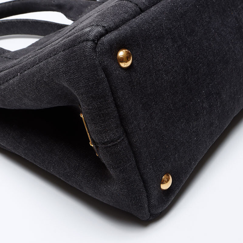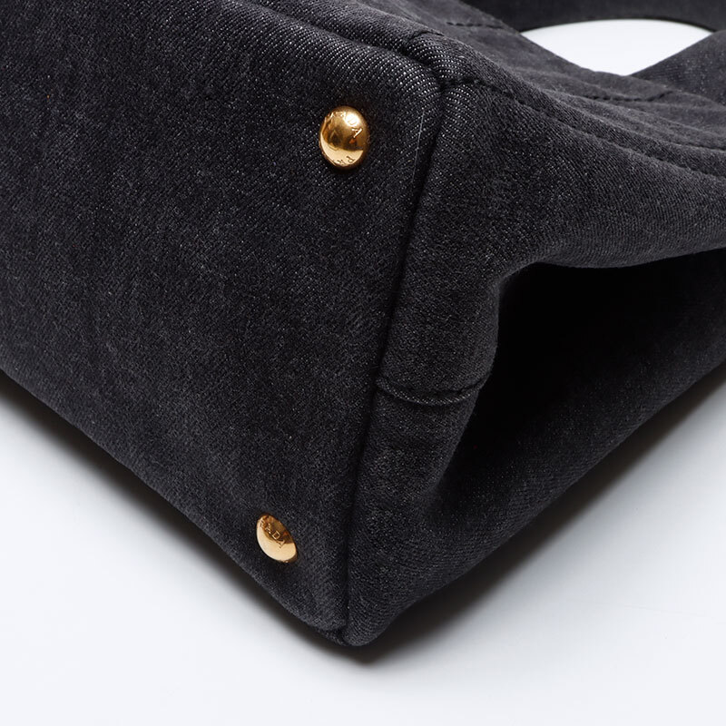 極美品 PRADA カナパ デニム スモール ハンドバッグ グレー