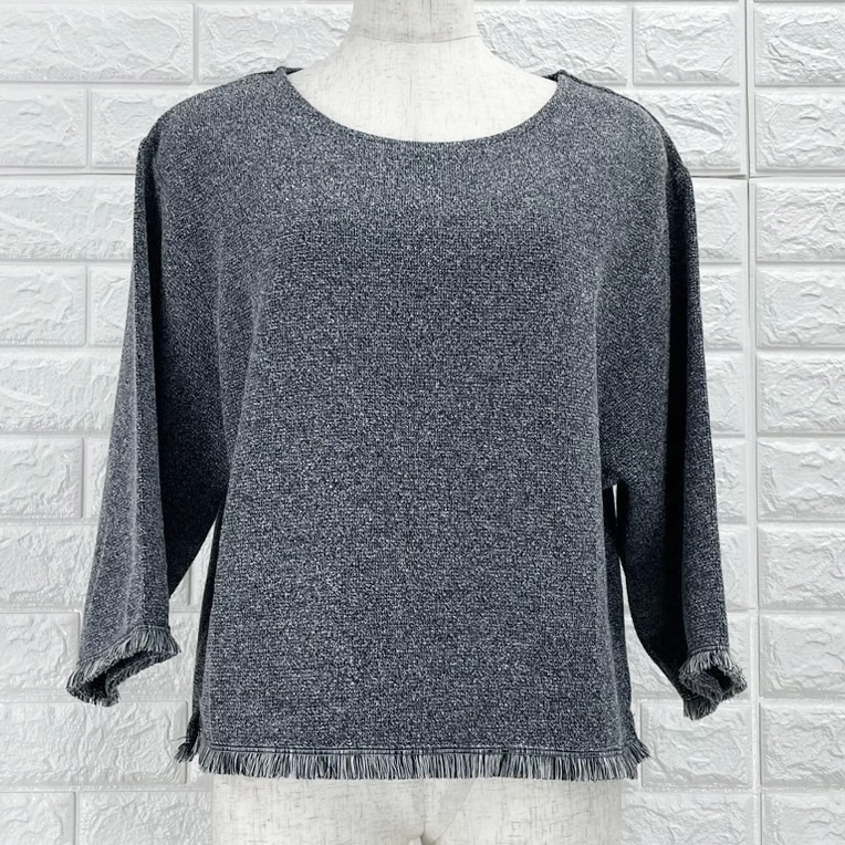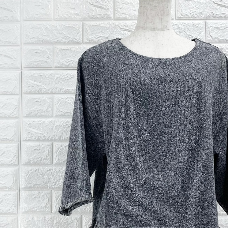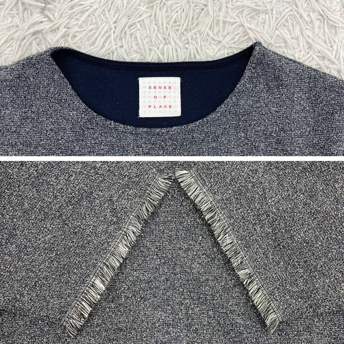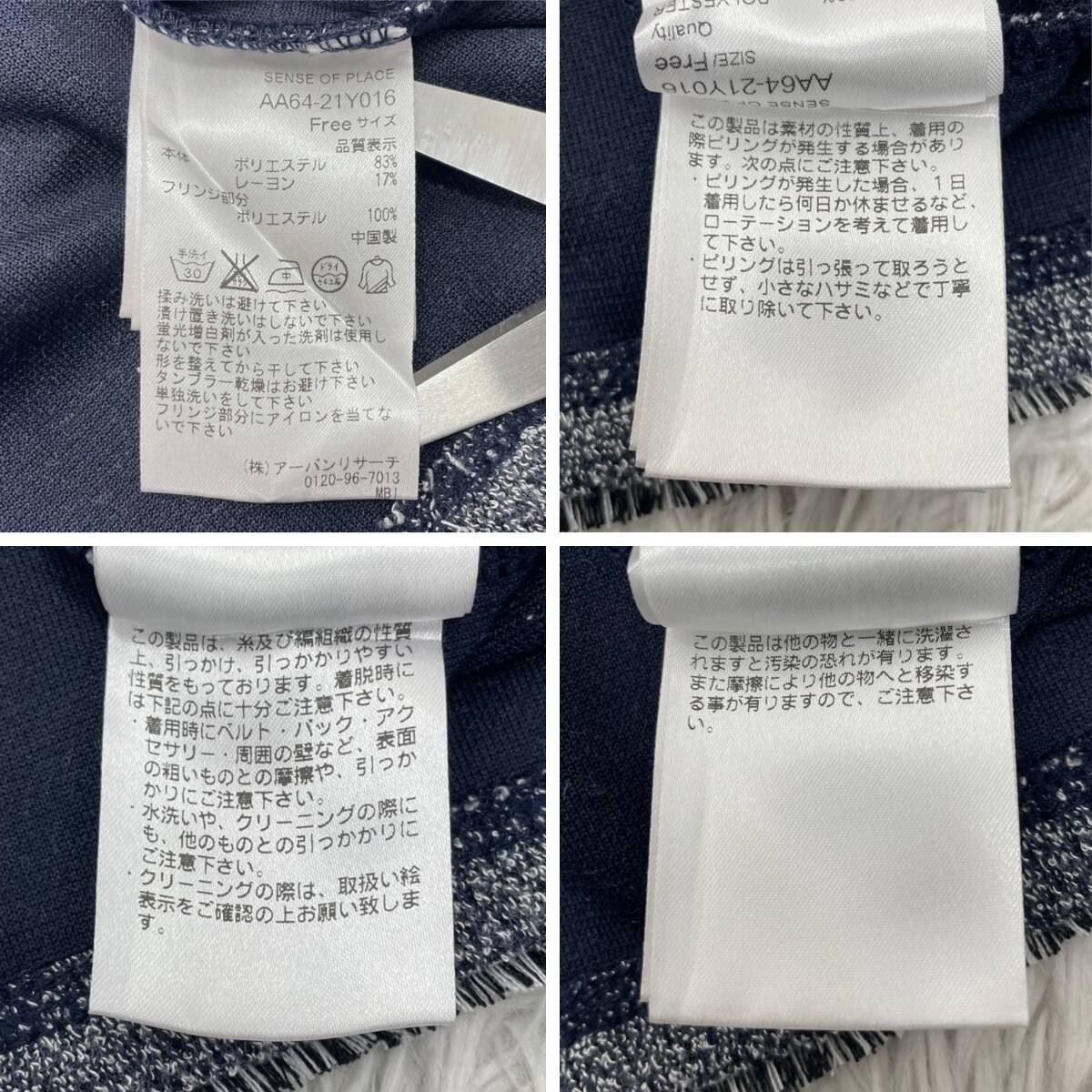 【A3428】SENSE OF PLACE センス オブ プレイス カットソー レディース 七分袖 フリンジ裾 シンプル カジュアル 春夏 フリーサイズ