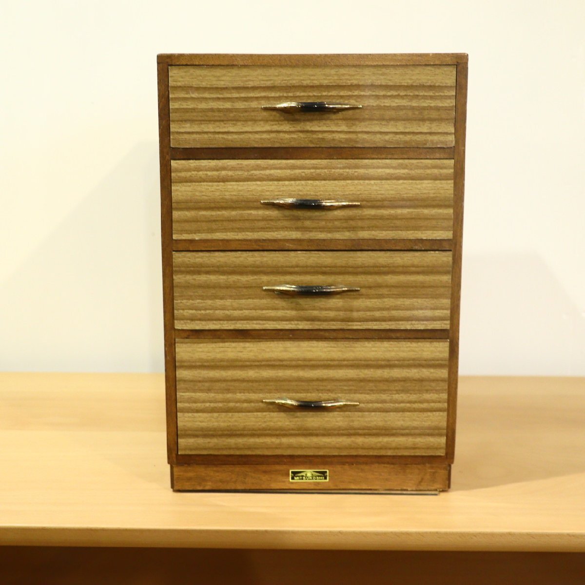 ヴィンテージ 昭和レトロ 小引き出し4段 アンティーク 小物収納 小物入れ ミニチェスト 和モダン 木製 古家具 三越 MITSUKOSHI FC601