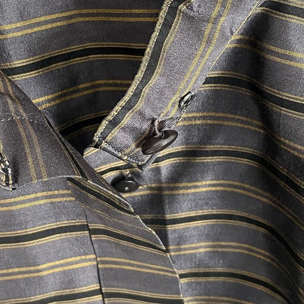| コンディション備考 | 襟元と右袖口のボタン糸に緩みがございます。後ろ身頃裾に糸吊りがございます。多少の使用感がありますが、全体的には良好な状態になります。 |