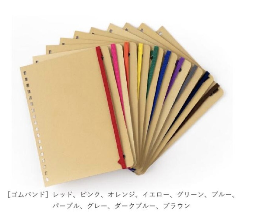 文具女子博限定デザインの表紙と、メモ、リング、ゴムバンドを、豊富なカラーからお好みの組み合わせでお選びいただけます。