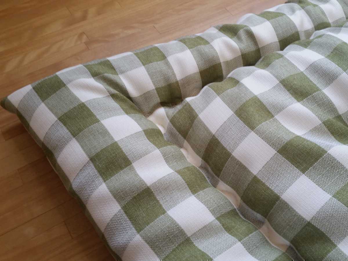 なかなか画像では伝わりにくいのですが、落ち着いたグリーンチェックのざっくりとした生地で出来ばえは本物思考の商品です。
