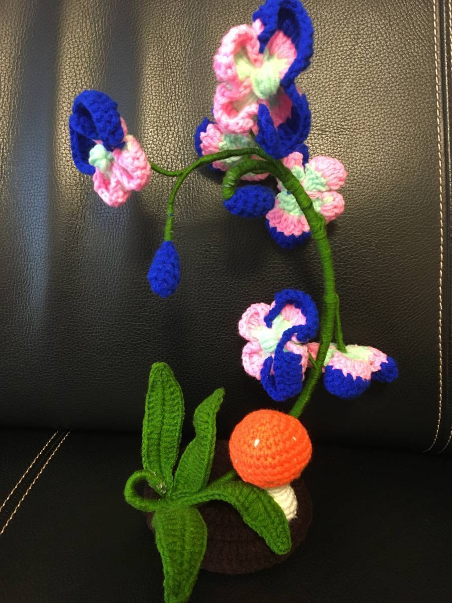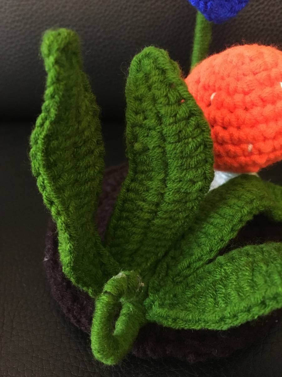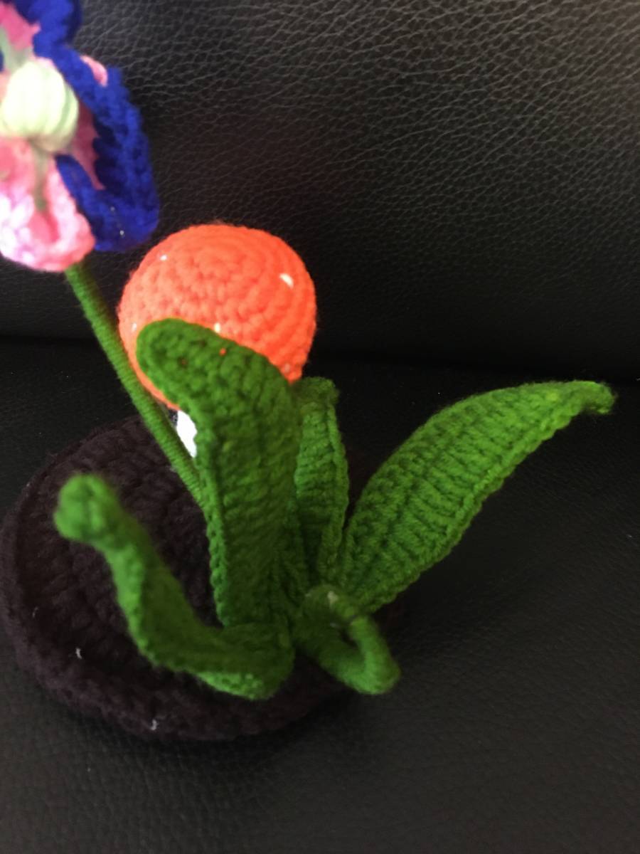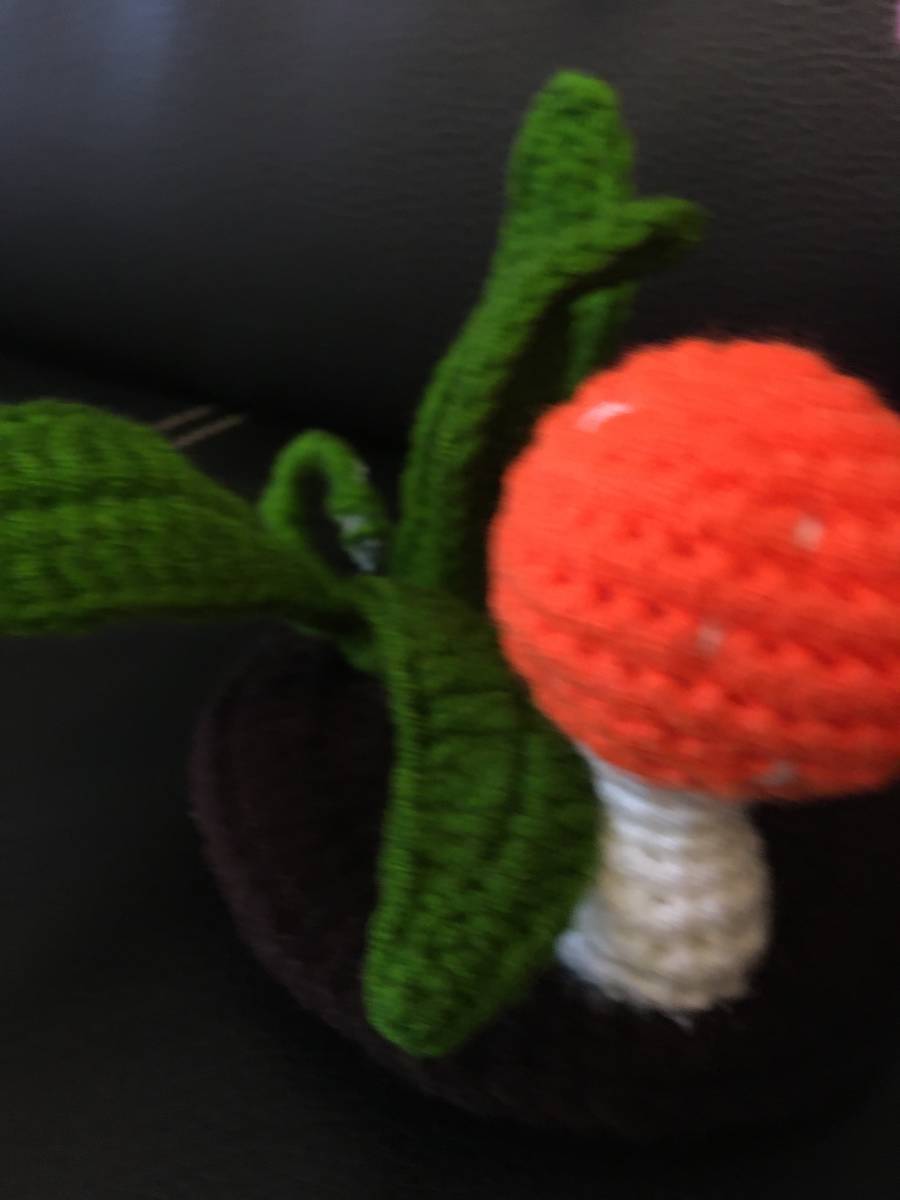Y1)花、キノコの置くもの、飾り、手編み ハンドメイド 飾り お母さんの手作りです
