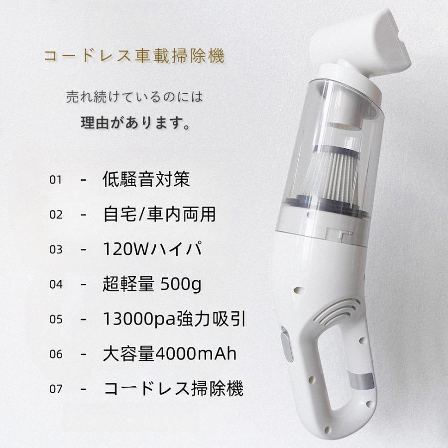 ハンディクリーナー キャニスター 掃除機 強力 コードレス 掃除機 13000pa USB充電式 強力吸引 超軽量 小型 自宅 車内両用 車載掃除機