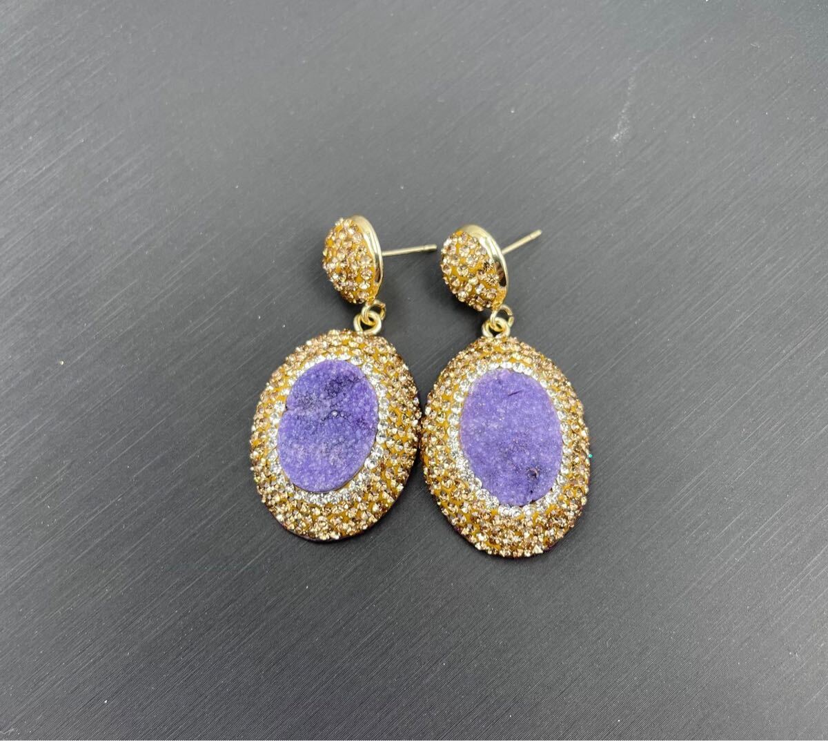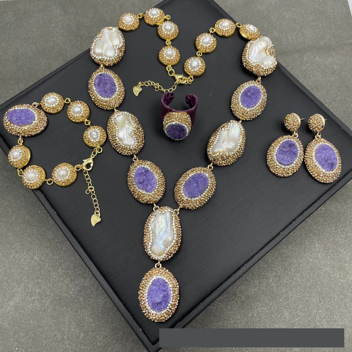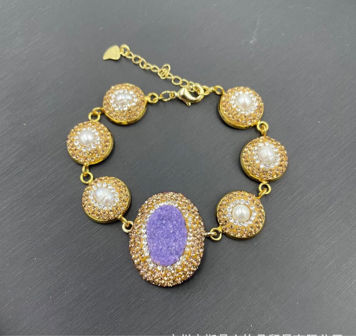 素材:銅金メッキ保色加工、ジルコニア、異形淡水真珠、紫色天然原石