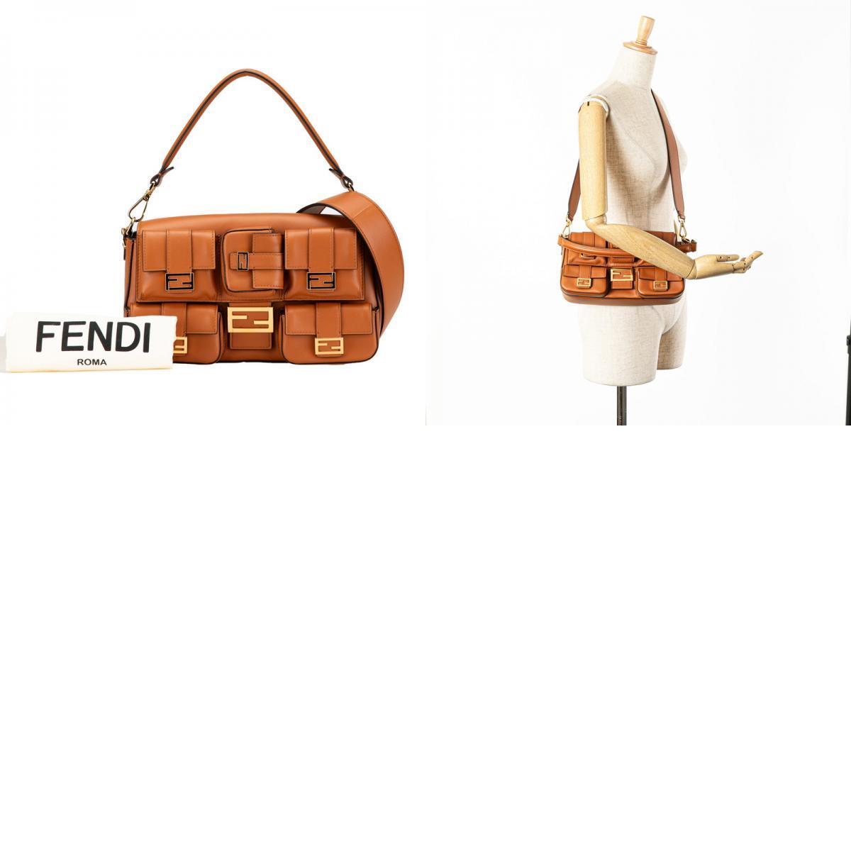 フェンディ マルチポケット バゲット ハンドバッグ ショルダーバッグ 2WAY 8BR808 ブラウン レザー レディース FENDI 【中古】