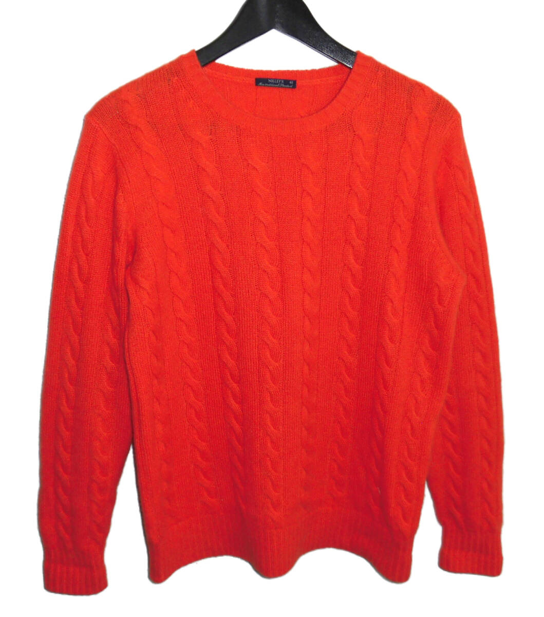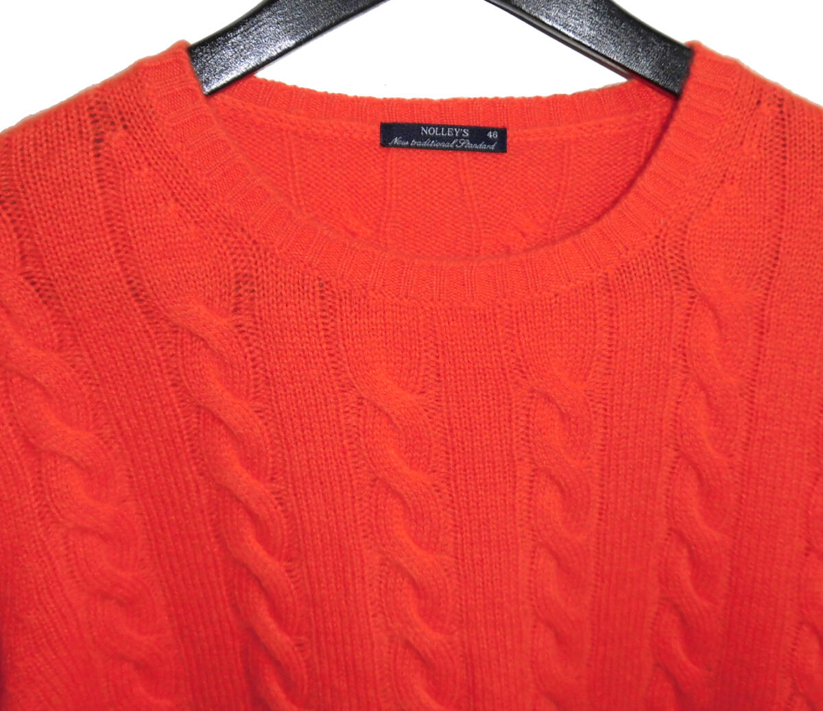 ◇極美品 NOLLEY'S ノーリーズ カシミア100% ケーブル編み ニット クルーネック セーター 46 メンズ