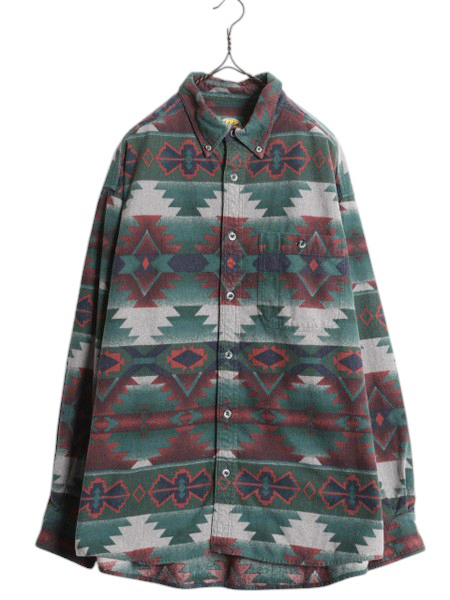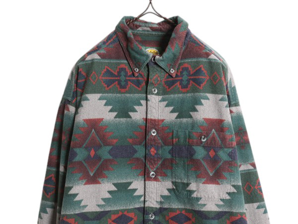 | 商品名 | 90s カベラス ネイティブ 総柄 シャモア クロス 3点留め ボタンダウン 長袖 シャツ メンズ XL 90年代 オールド Cabelas ヘビー フランネル |
