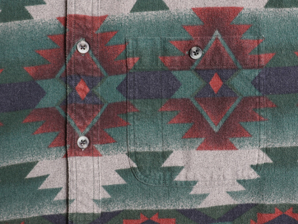 90年代のオールド Cabela's の総柄シャモアクロスシャツです。 カベラスは、1961年設立の ハンティング フィッシング アウトドアを専門とするブランド 素材は、100% COTTON ( コットン ) しっかりとした厚手のヘビーウェイト 着心地抜群のコットンシャモア素材が使用されています。 フランネルシャツに似たシャモア(Chamois)シャツは、 セーム皮の意味で、厚手のコットン生地を起毛させた素材 とても丈夫なシャツで長く着込むほどに生地も柔らかくなります。 クラシカルな3点留めボタンダウン 左胸に綺麗な柄合わせが施されたペン差しポケット付き 合わせやすい、落ち着いた配色 マルチカラーのネイティブ総柄 コーディネートの良いアクセントになる、 1枚で様になるグッドデザイン 長く愛用して頂ける商品です。 |