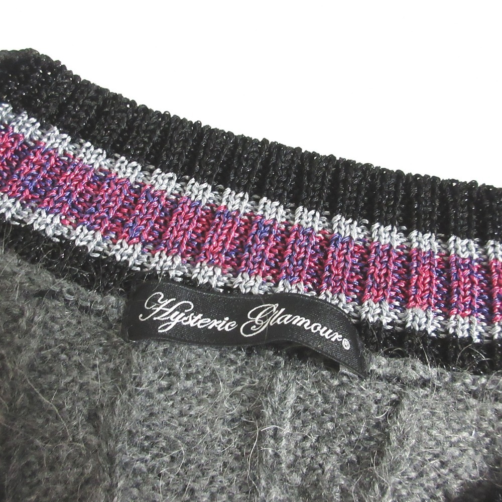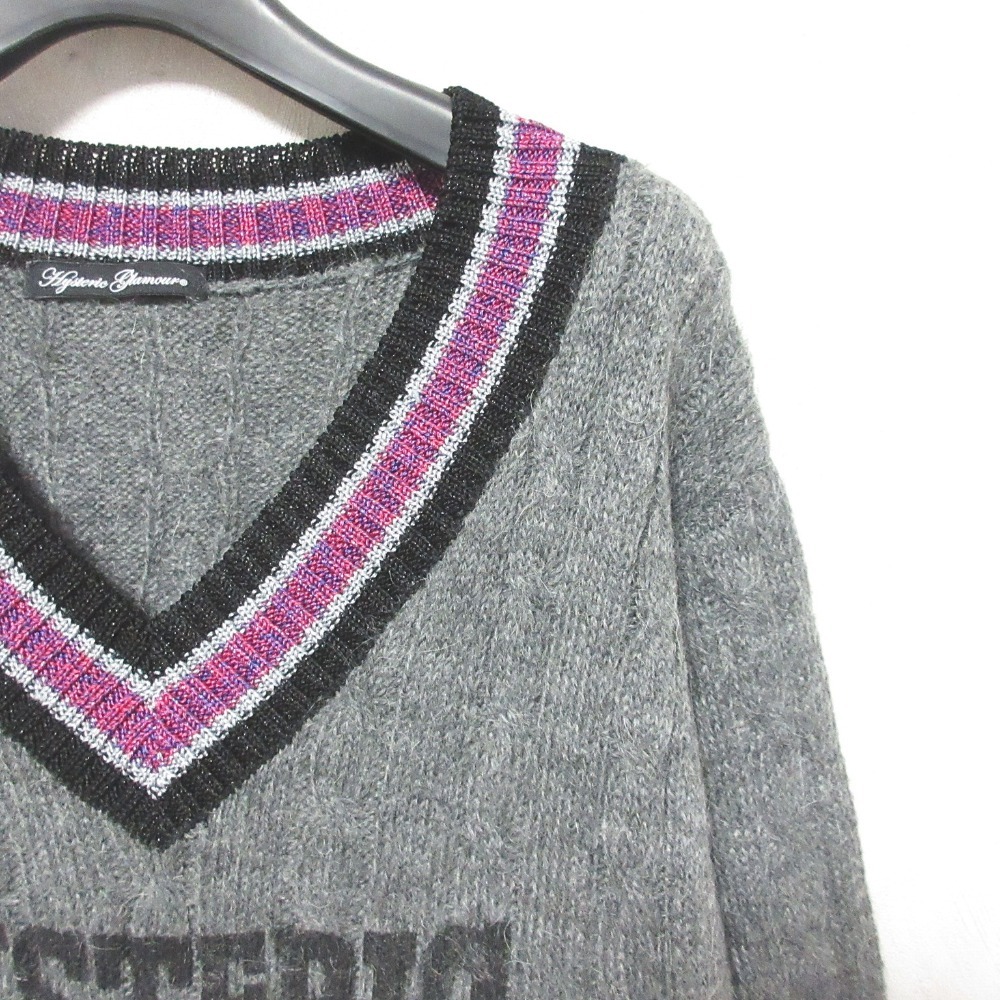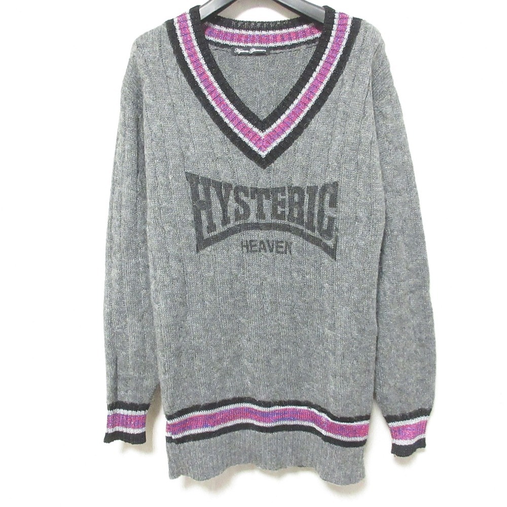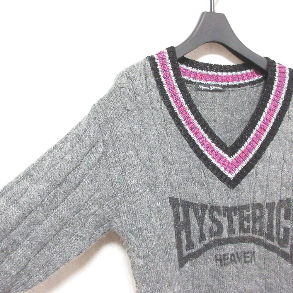 美品 HYSTERIC GLAMOUR ヒステリックグラマー フロントロゴ Vネック ケーブル チルデンニット プルオーバー セーター グレー