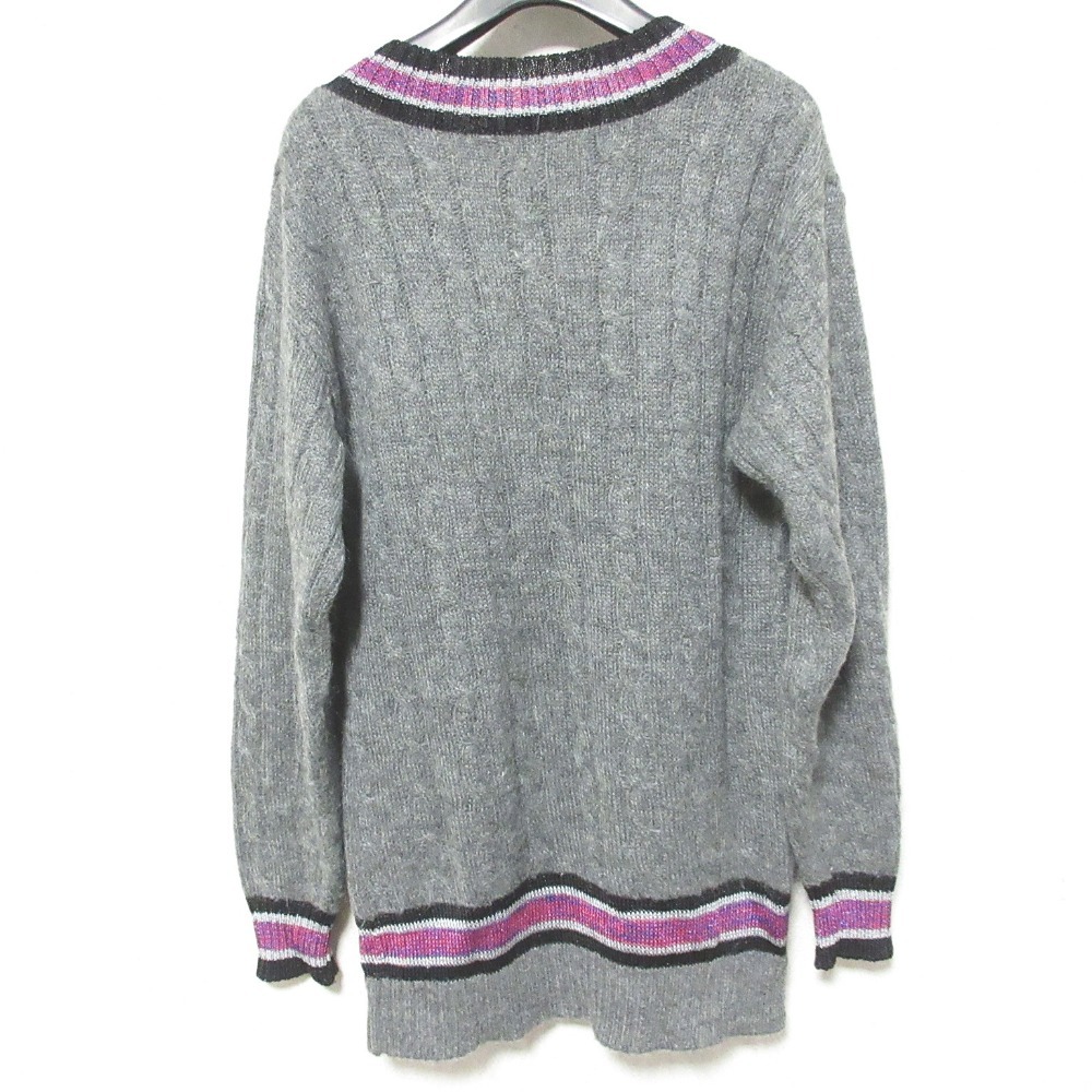商品名:美品 HYSTERIC GLAMOUR ヒステリックグラマー フロントロゴ Vネック ケーブル チルデンニット プルオーバー セーター グレー