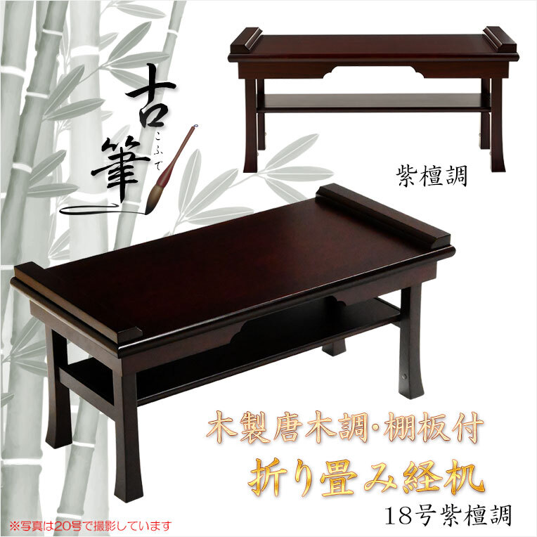 伝統型経机【木製唐木調・棚板付 折り畳み経机:古筆(こふで)紫檀調  18号】