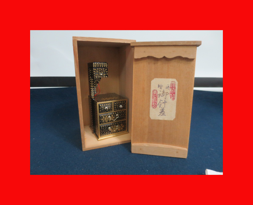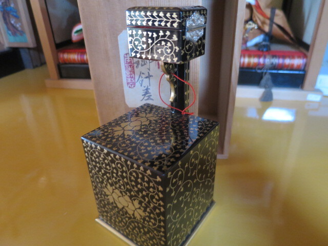 「針箱K-112」 作りの良い新品同様のお品です。 友箱付き 幅8cm高さ18cm奥行8cm (詳しくは写真にてご確認の上ご判断下さい) |