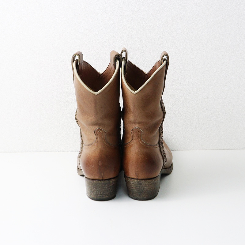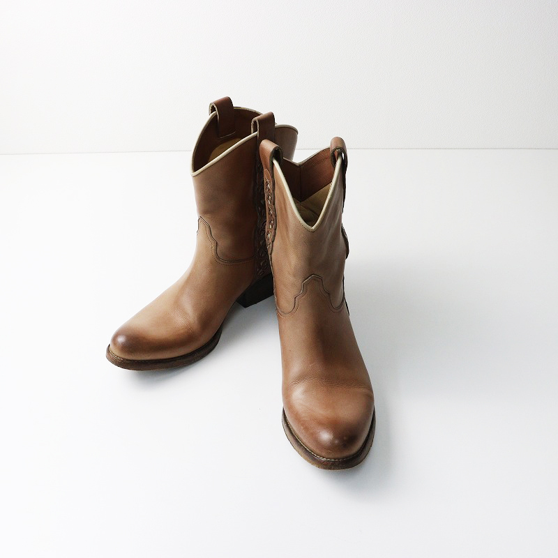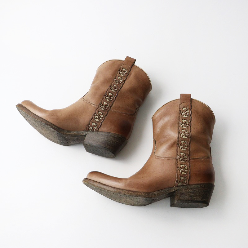 サルトル SARTORE ミドル丈 刺繍 ウエスタンブーツ 36.5/ブラウン系 本革【2400014311747】