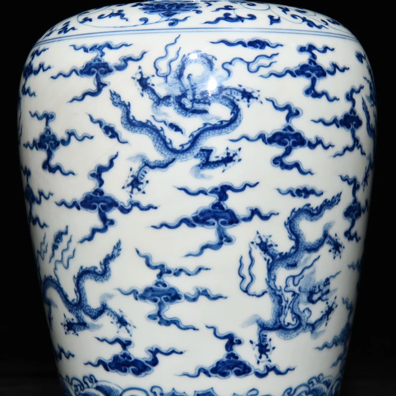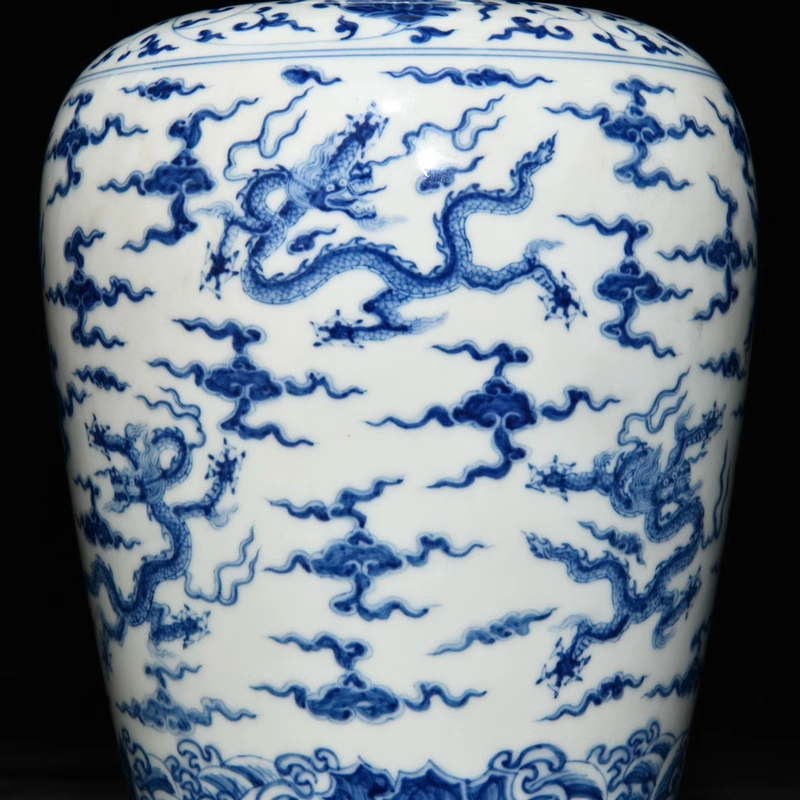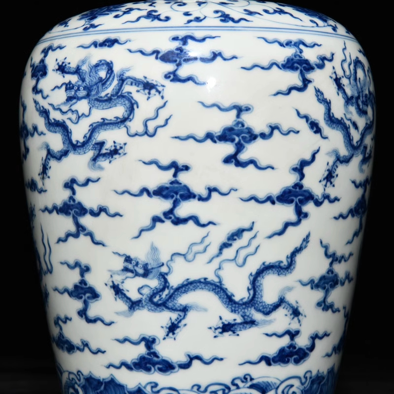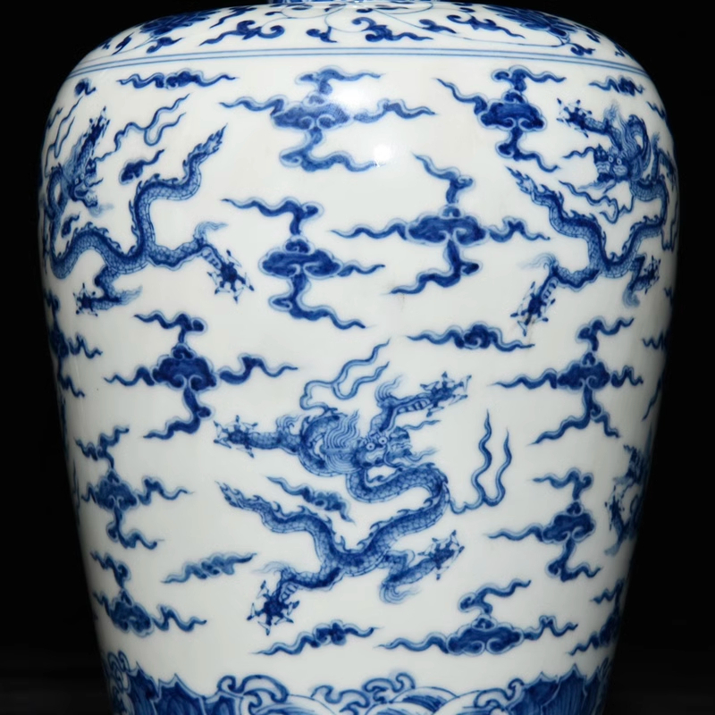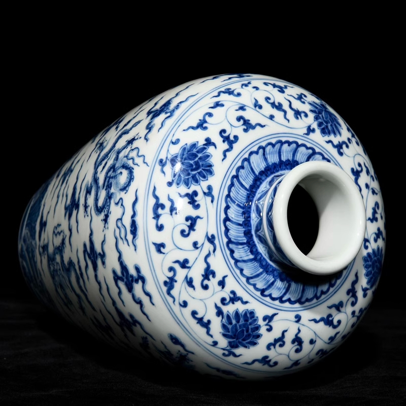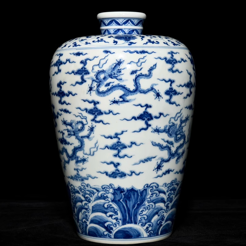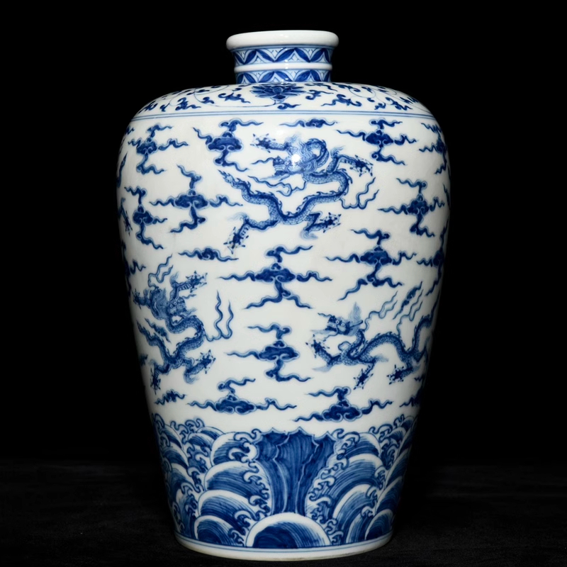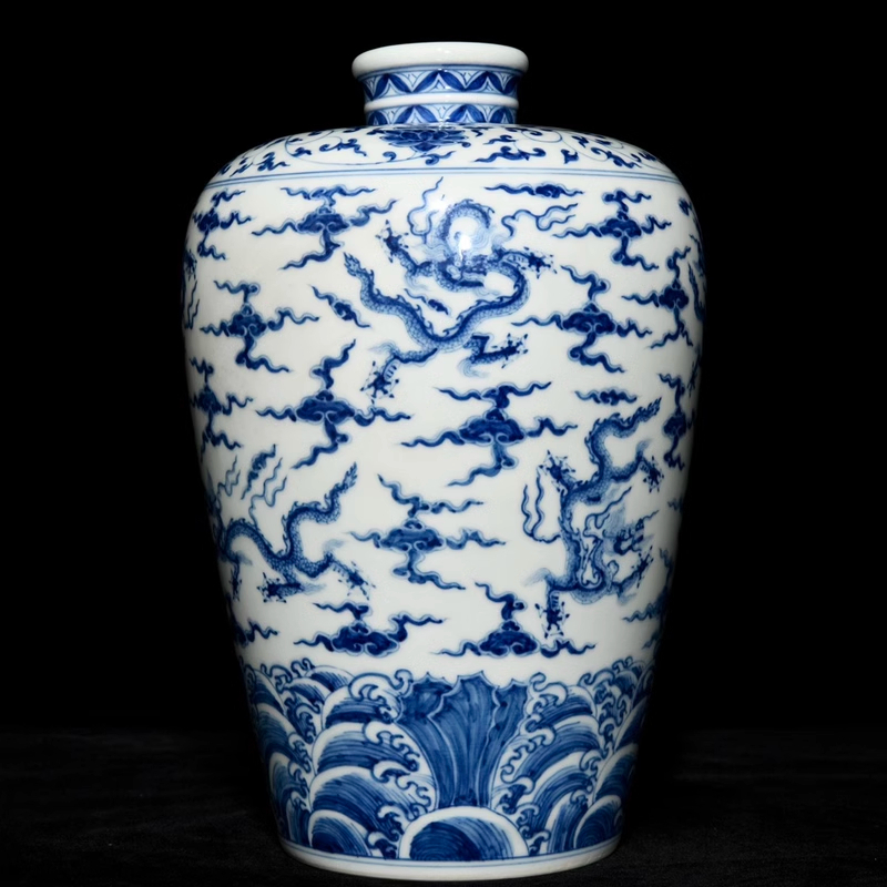 明時代 成化 青花 雲龍文梅瓶 唐物 箱付き 陶磁器 中国美術 古美術 置物 高さ27.2cm 直径18cm RB07