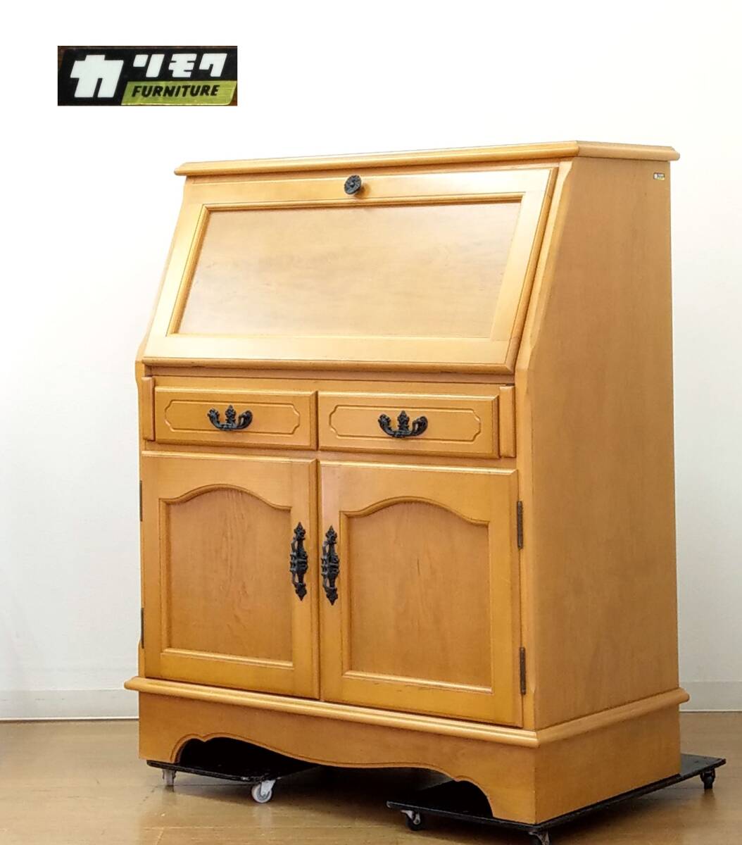 カリモク コロニアル 木製 ライトカラー ライティング デスク ビューロー 文机 机 デスク インテリア家具 幅88cm