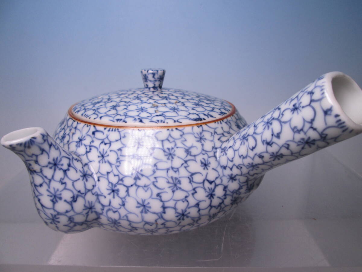 ☆お料理屋さんの器 清水焼 正峰作 染付 桜詰文 急須 箱無 懐石/割烹/日本料理