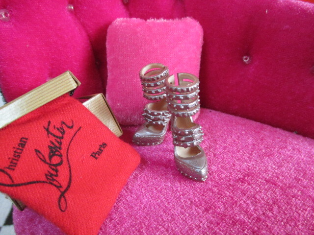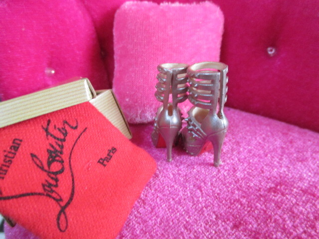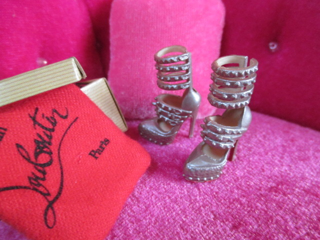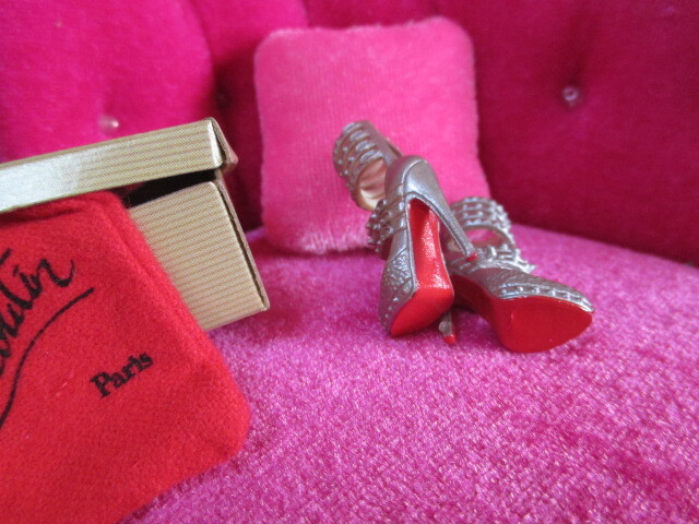 ★マテル バービーコレクター Christian Louboutin Barbie Shoe Collection 銀色アンクルストラップ。 クリスチャンルブタンコラボ バービーサイズの靴。