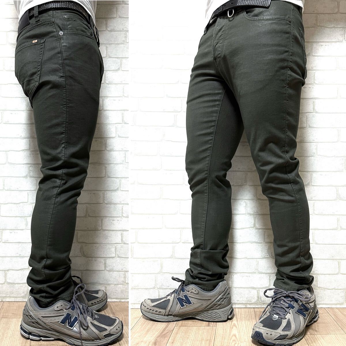☆コーティング加工が施された光沢感のあるルックスが特徴の一本。更にストレッチ素材を加えており、伸縮性のある快適な穿き心地です◎また、バックにはプレートタイプのピスタグやレザーパッチを配置した細部までこだわりの詰まったボトムスです。