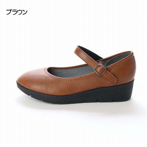 39lk 全国送料無料 パンプス 4E 日本製 厚底 ワンストラップ 大きいサイズ 痛くない ウェッジソール 幅広 走れるパンプス 黒 ロリータ