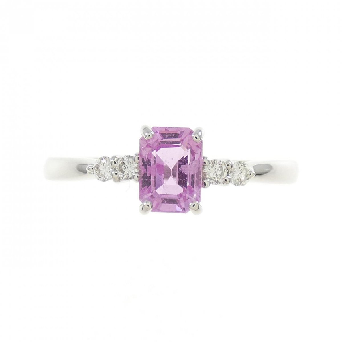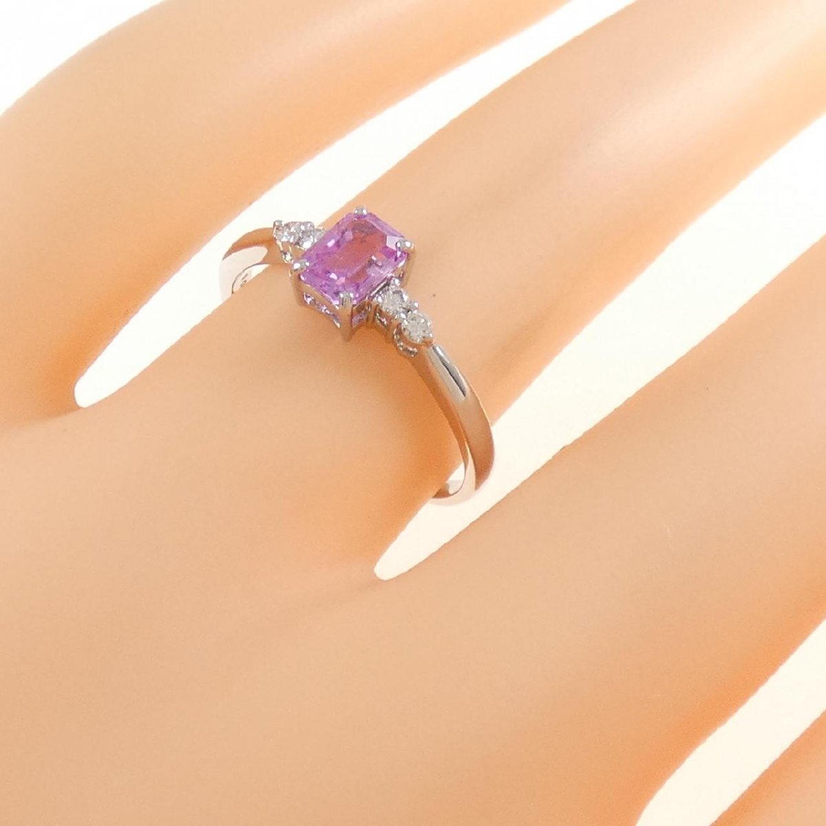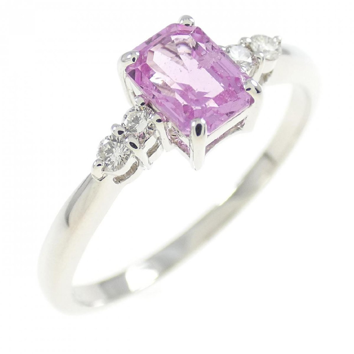 透き通るピンクサファイヤをセッティング。キラリと光るダイヤモンドがサイドを飾ります。
