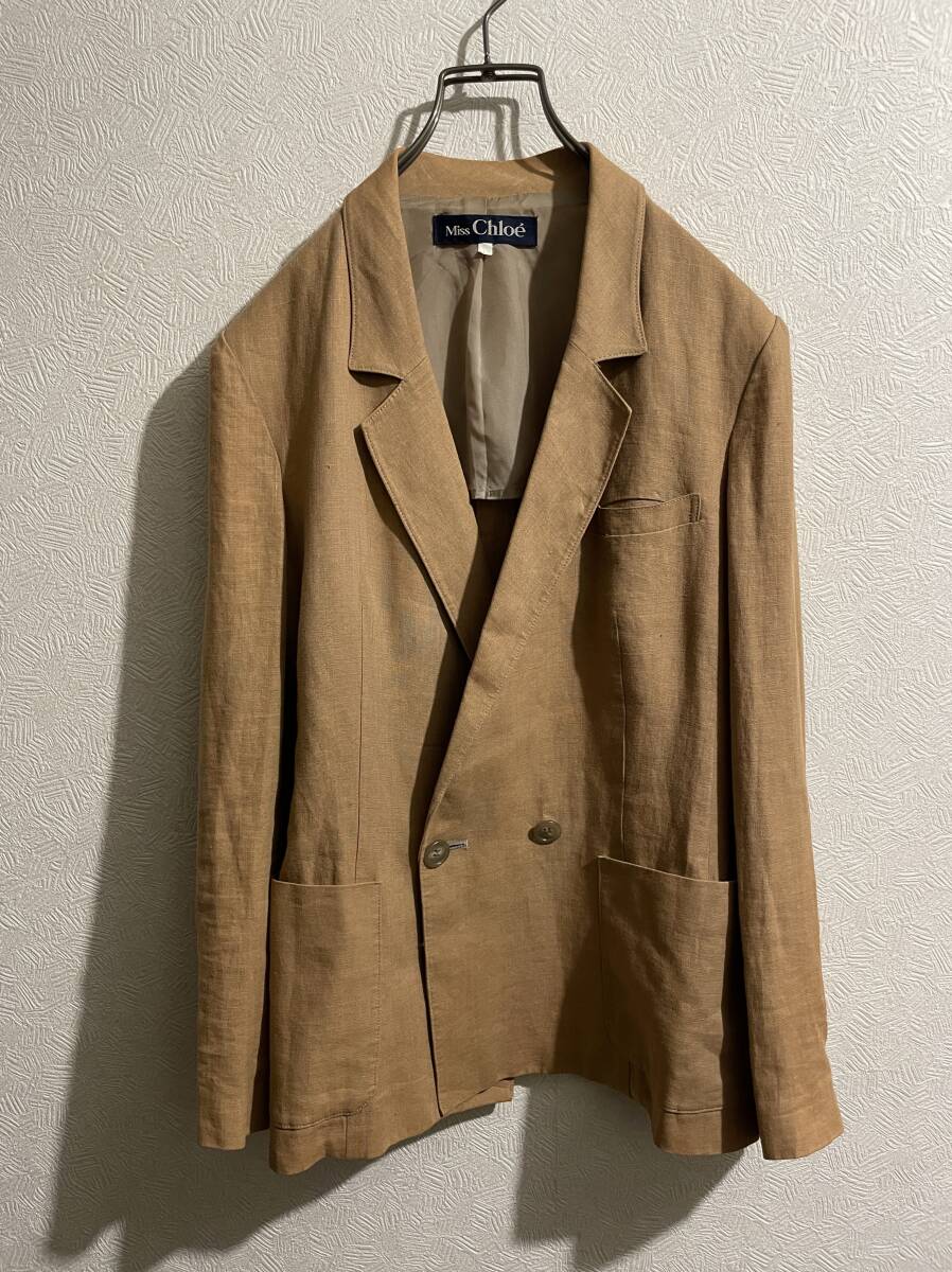 ◯ Vintage Chloe リネン ダブル テーラード ジャケット / クロエ Miss ミス ブレスト ローゴージ スーツ ベージュ 40 Ladies #Sirchive