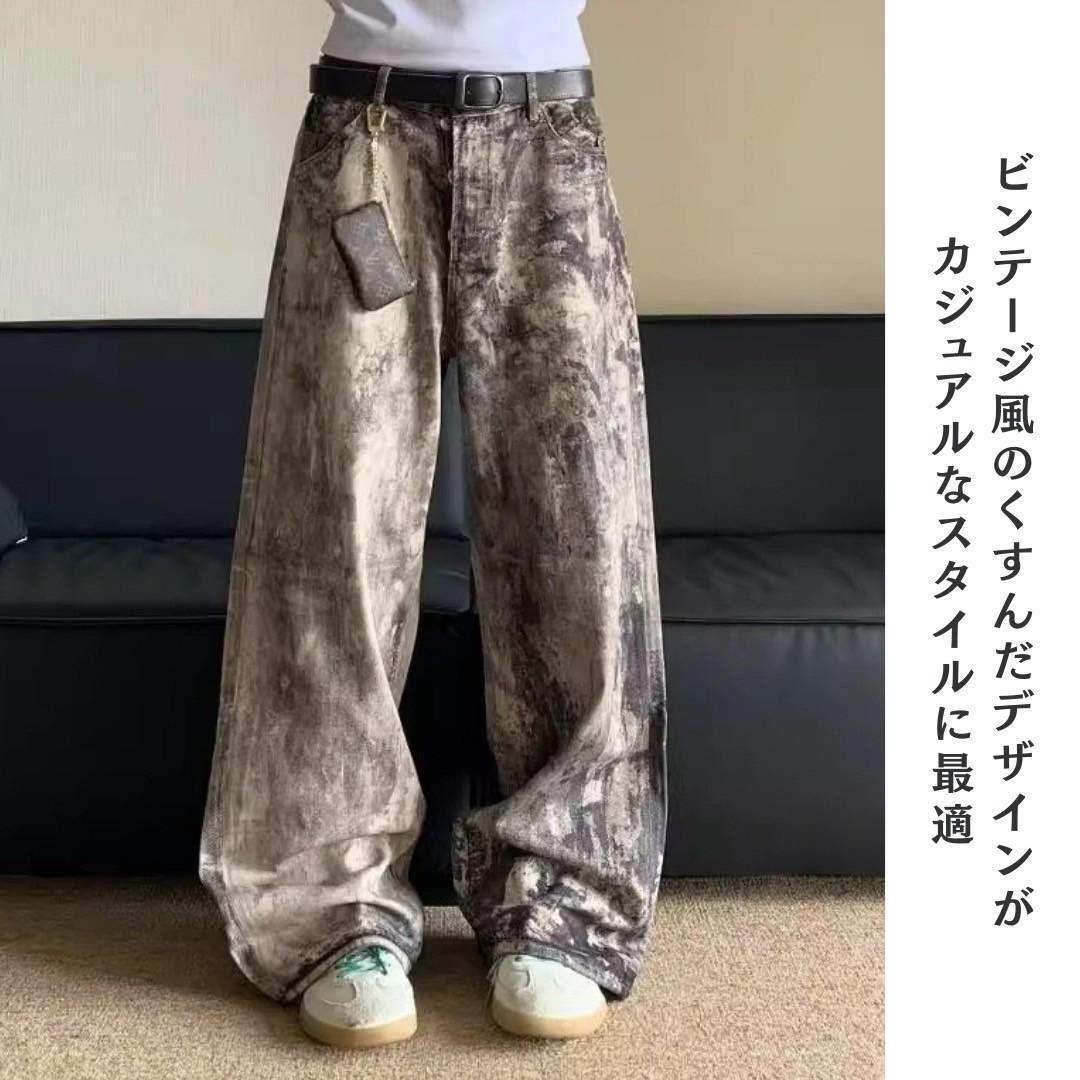 ウォッシュドデニムパンツ プリントデニム デジタルプリント ヴィンテージ ジーパン ワイドシルエット ワイドデニム フレアパンツ バギーパンツ 迷彩 カモ柄デニム y2k 激太 アメカジ ハイウエスト 地底人 カーブデニムパンツ ワイドシルエット ハイウエスト 体型カバー 韓国 中国 インポート