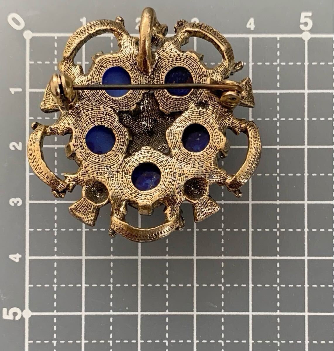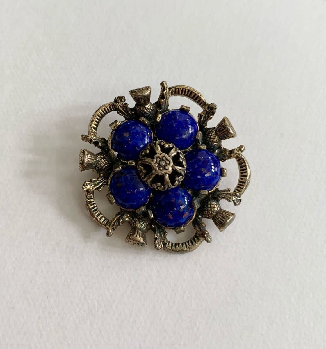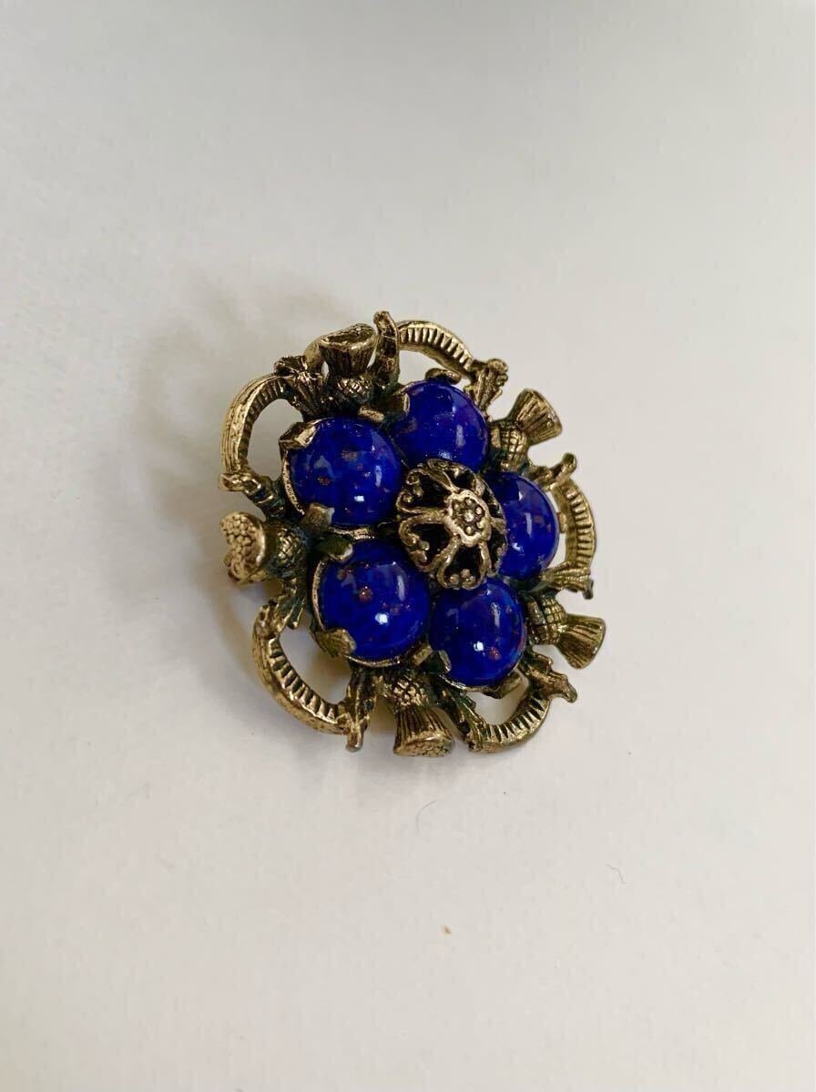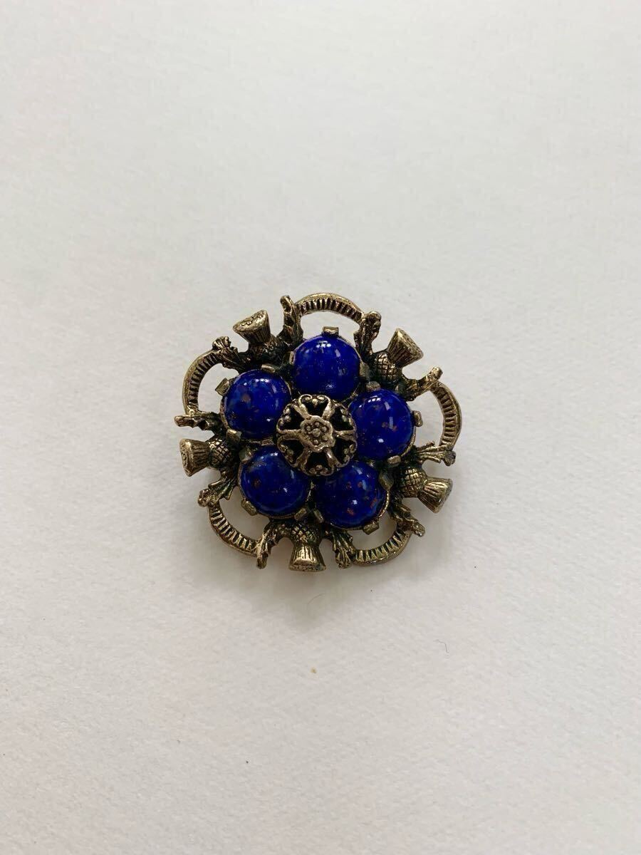 深い蒼いガラスが印象的なブローチのご紹介です。