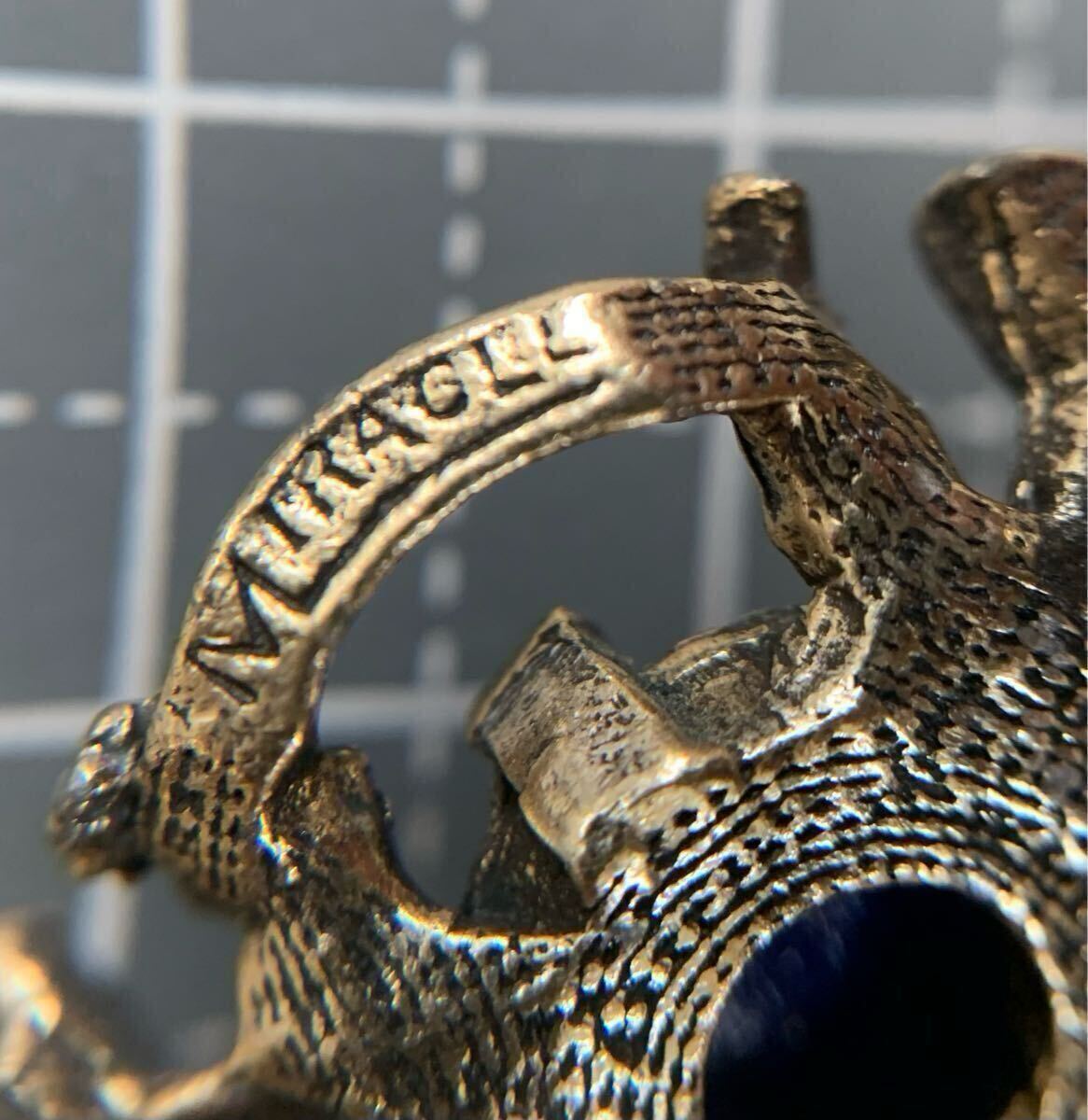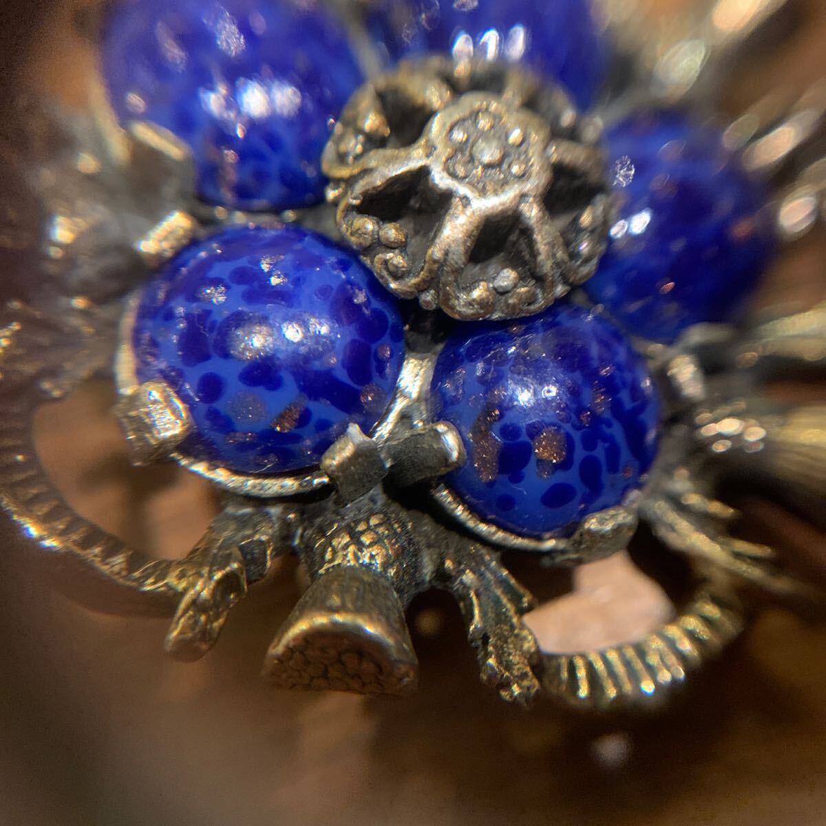 よく見ていただくと、蒼色のガラスに所々にメタリックなコッパー色の斑点が見られ、まるで本物のラピスラズリのように造られた拘りの感じられるお品です。
